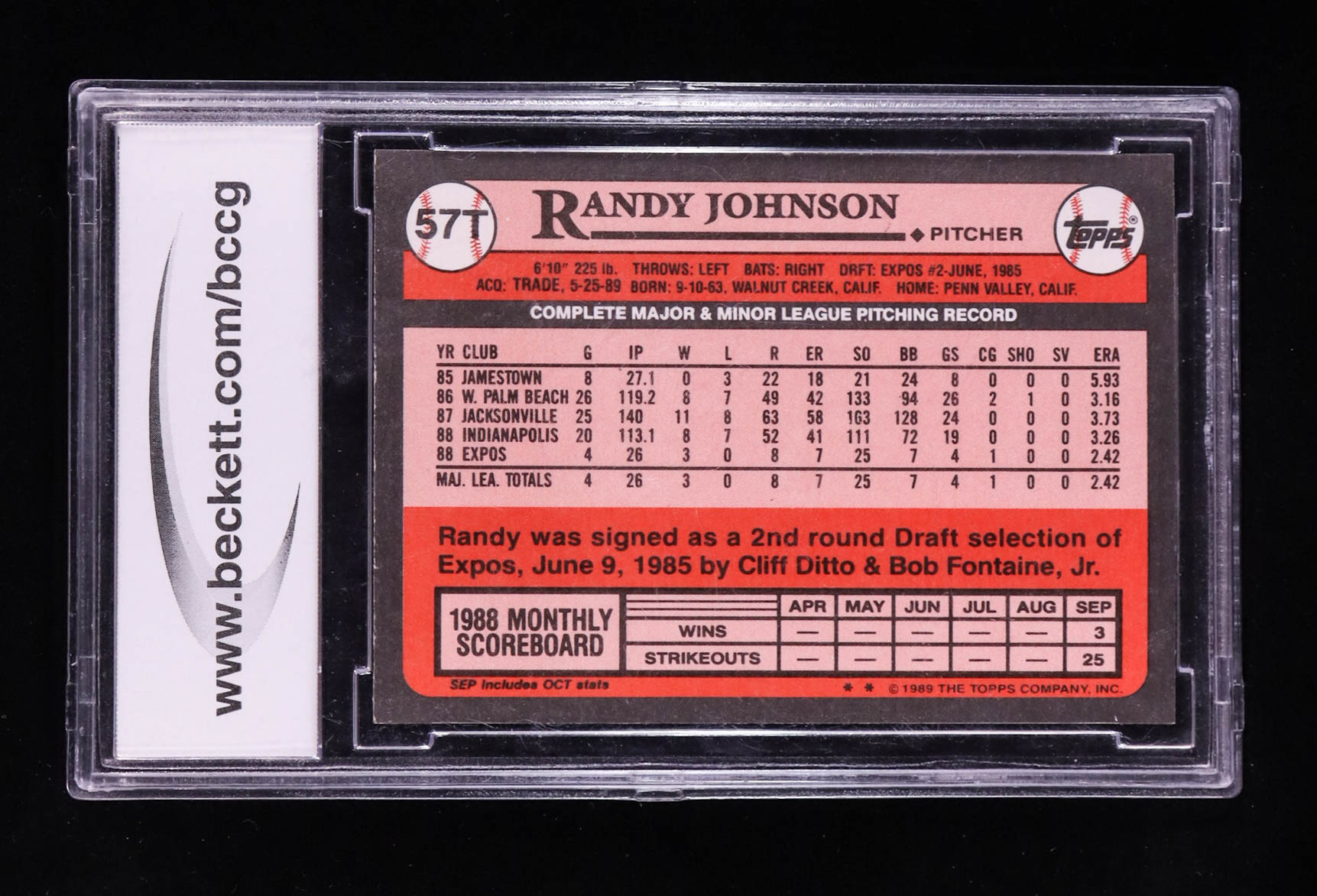 Randy Johnson 1987 Topps Traded #57T RC (BCCG 10)