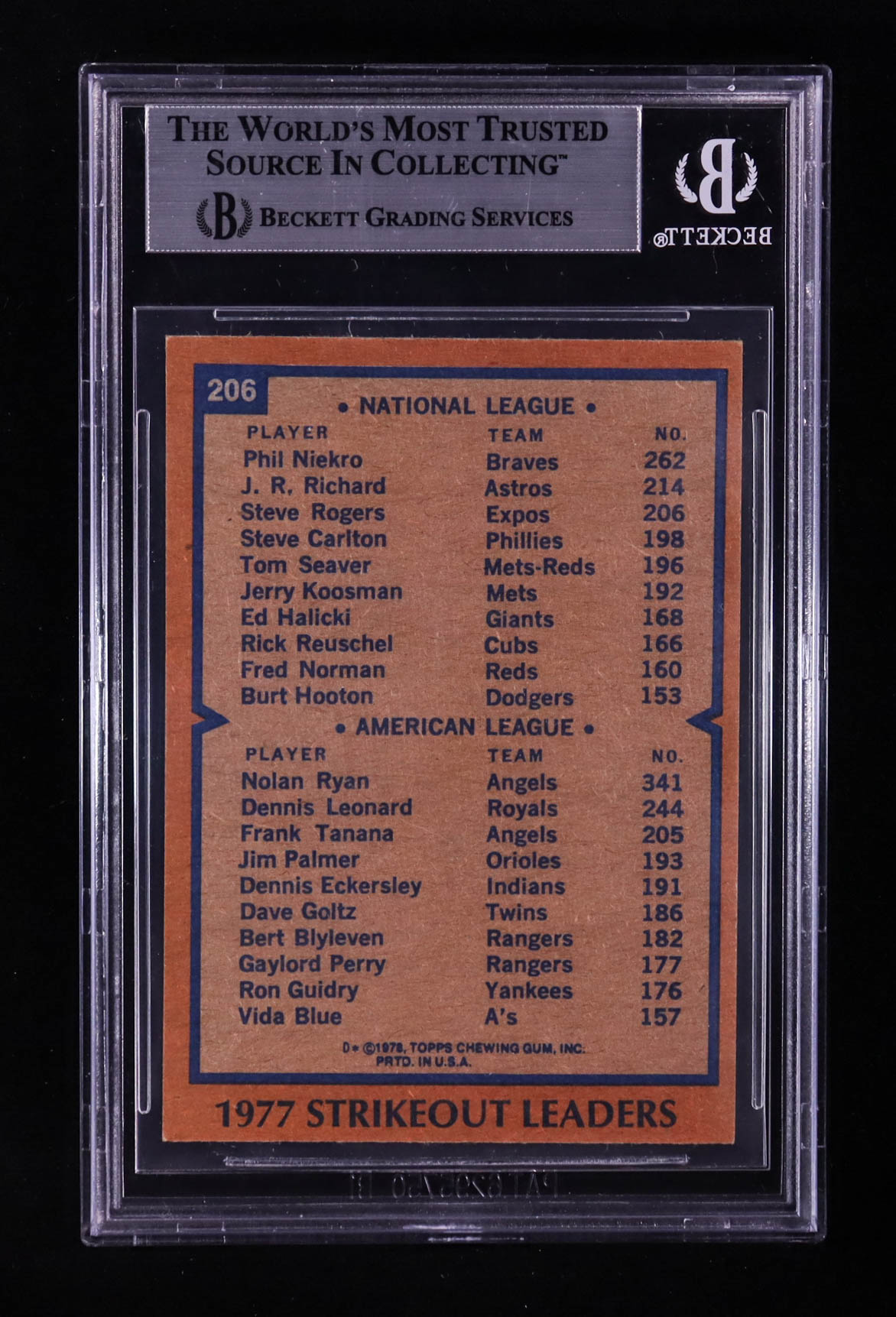Phil Niekro / Nolan Ryan 1978 Topps 1977 Strikeout Leaders #206 (BGS 8)