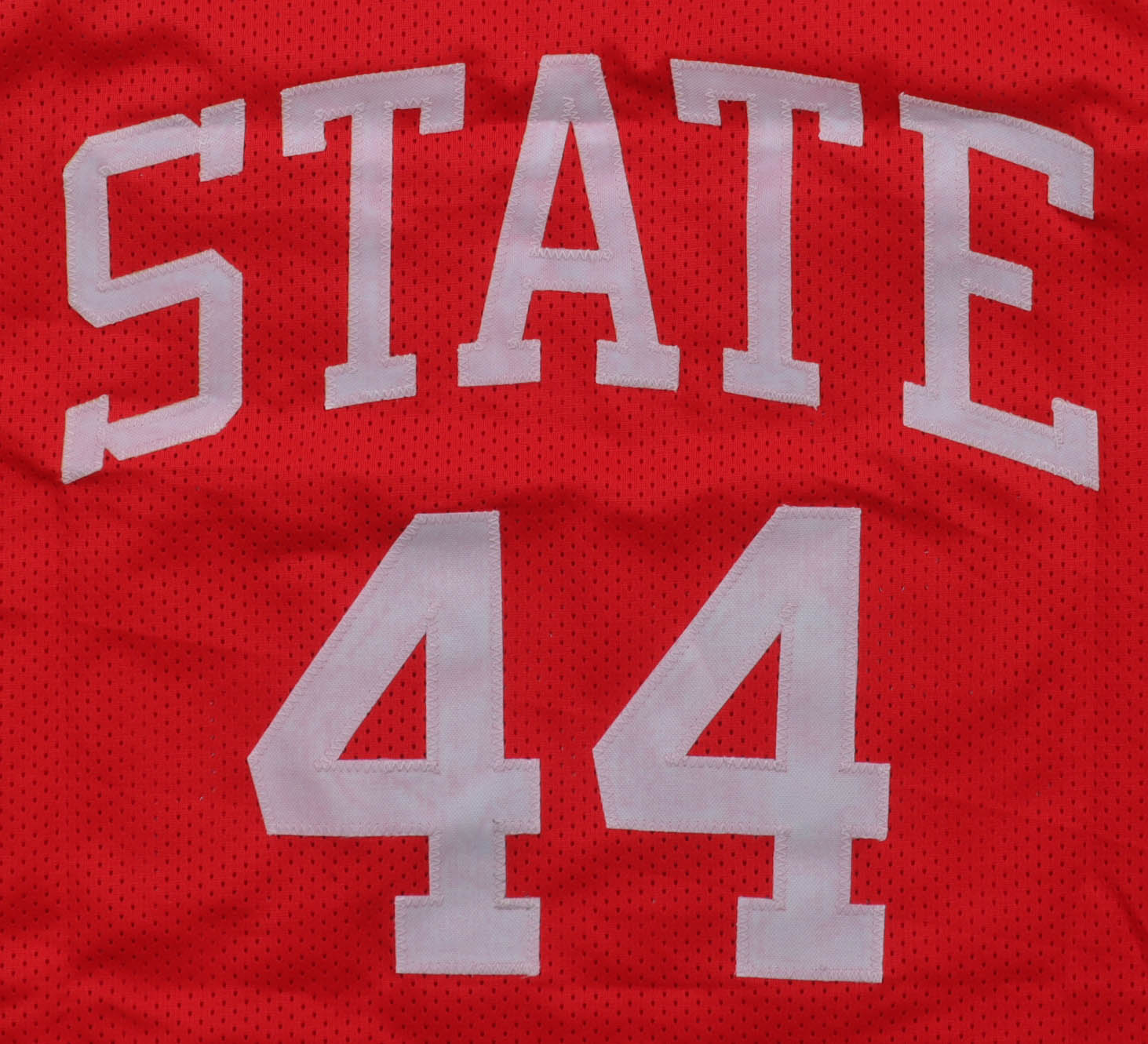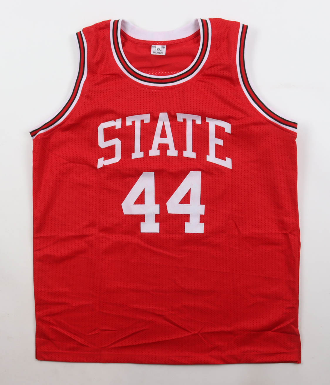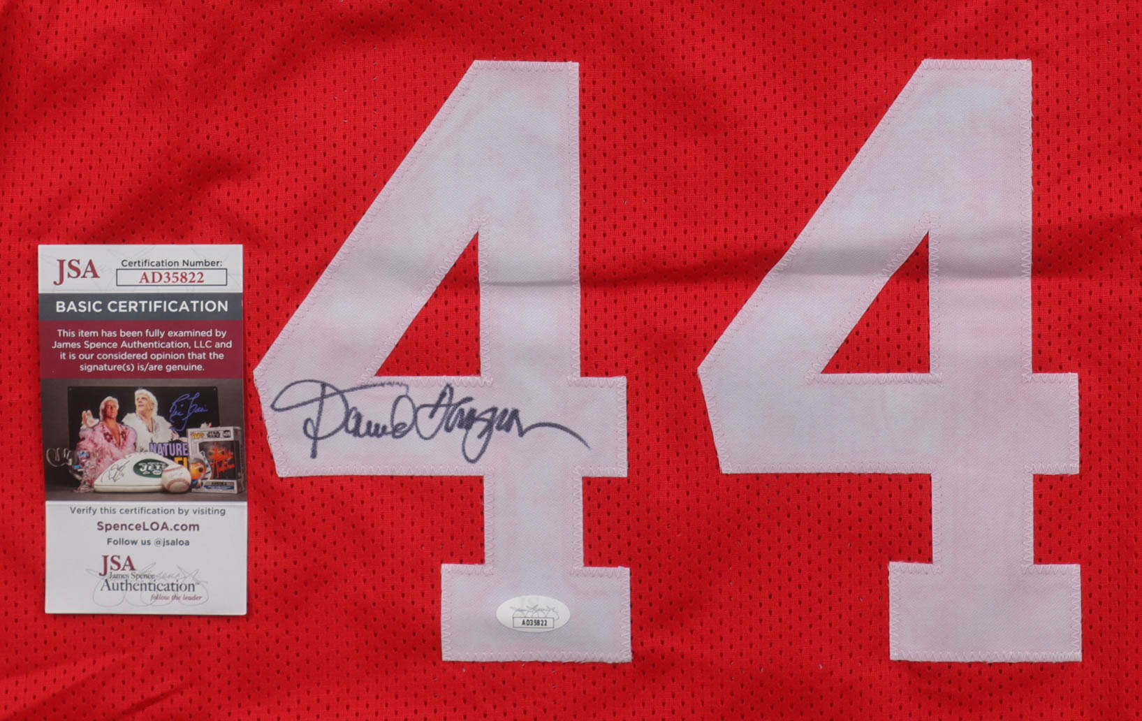 Custom jersey with everything sewn on, size XL. Hand-signed by David Thompson (HOF). Please note, glue is visible through the front and reverse numbers.