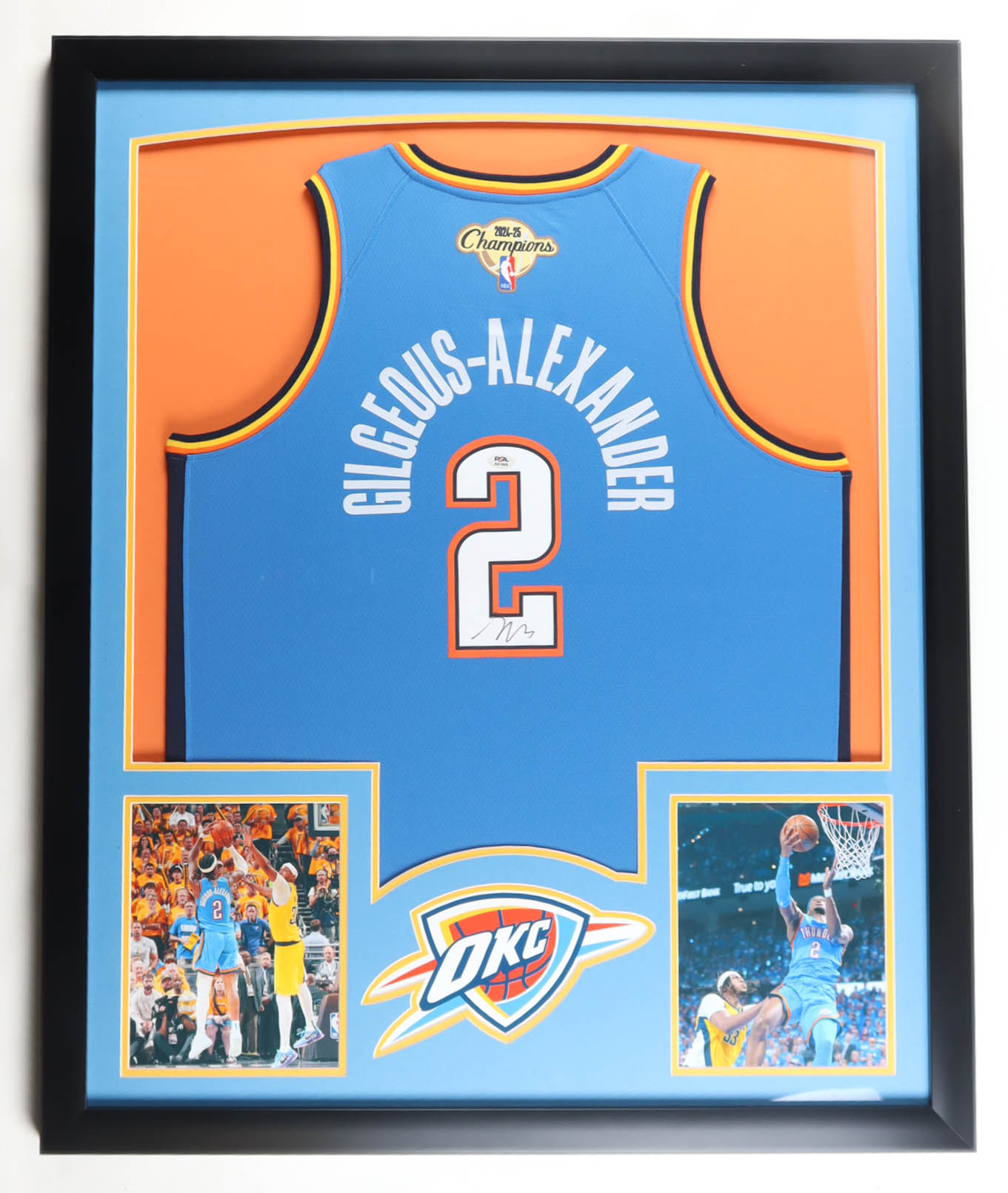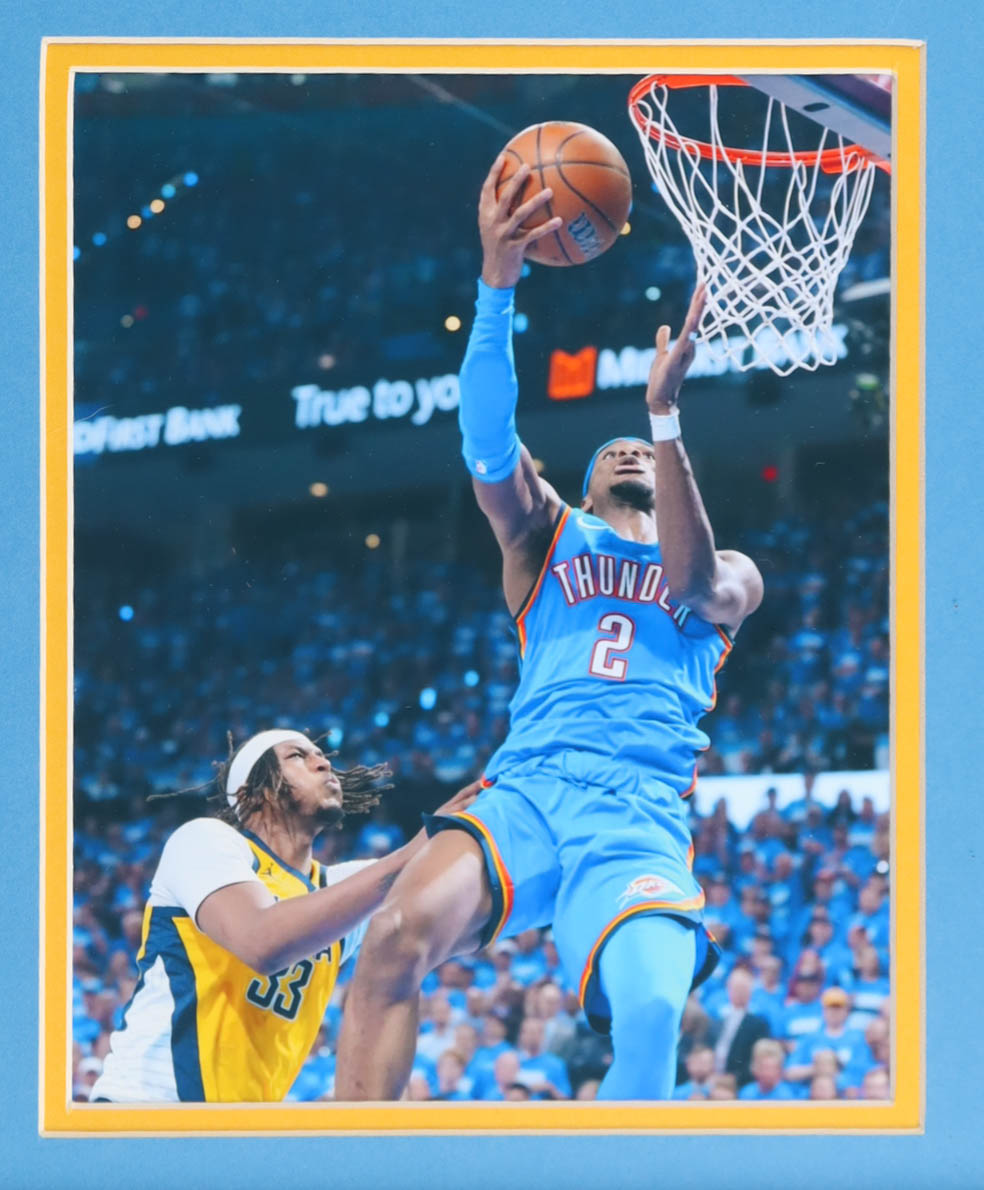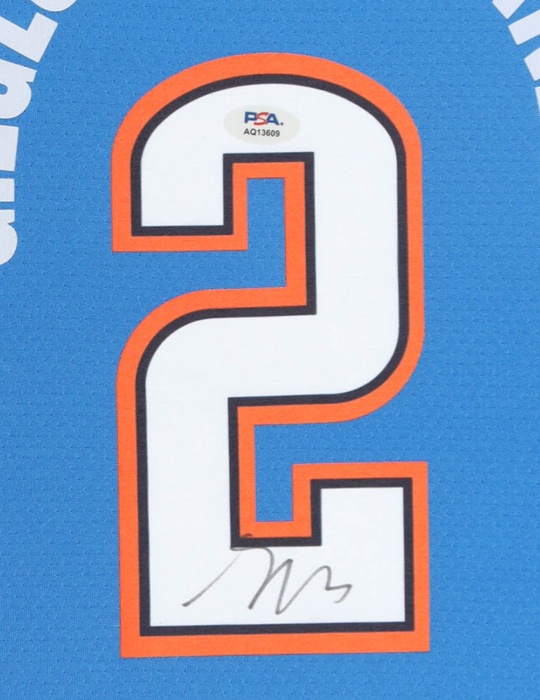 Custom frame measures approximately 33" x 39" in size and features a jersey that has been hand-signed by Shai Gilgeous-Alexander.