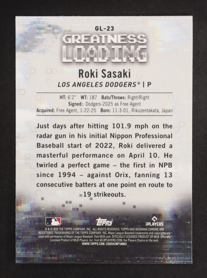 Roki Sasaki 2025 Bowman Chrome Greatness Loading #GL23 RC