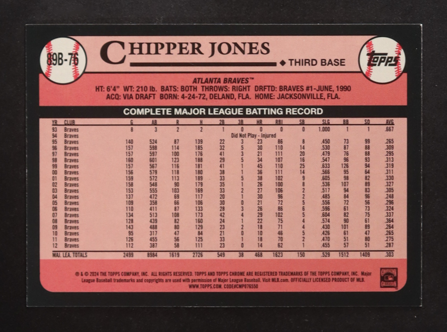 Chipper Jones 2024 Topps '89 Topps Foil #89B76