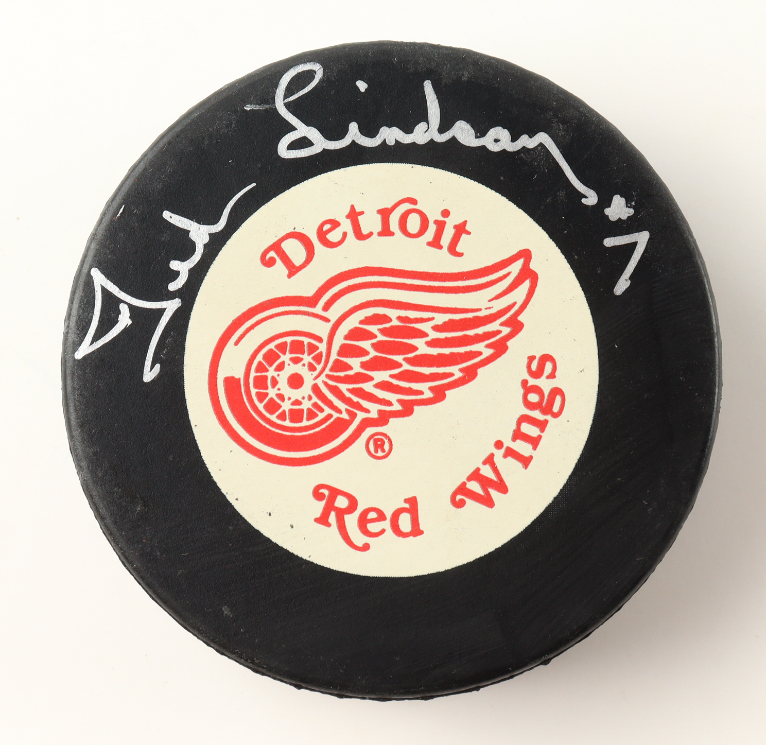 Detroit Red Wings logo puck has been hand-signed by Ted Lindsey (D. 2019, HOF). Includes display case as shown. Refer to photos for more details.