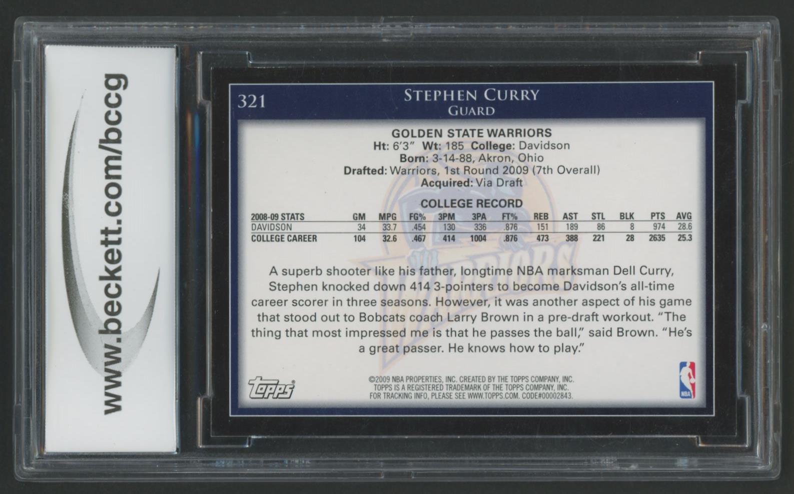 Stephen Curry 2009-10 Topps #321 RC (BCCG 10)