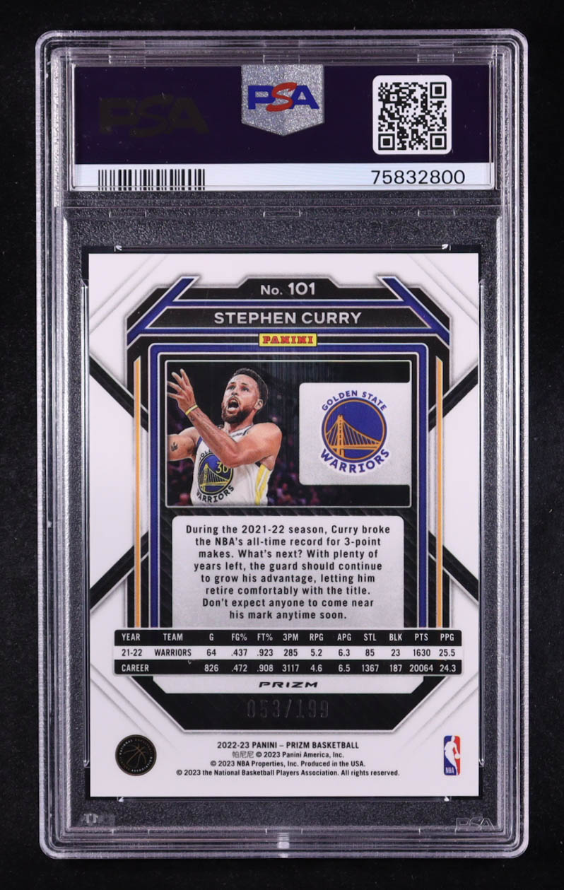 Stephen Curry 2022-23 Panini Prizm Prizms Blue #101 #053/199 (PSA 9)