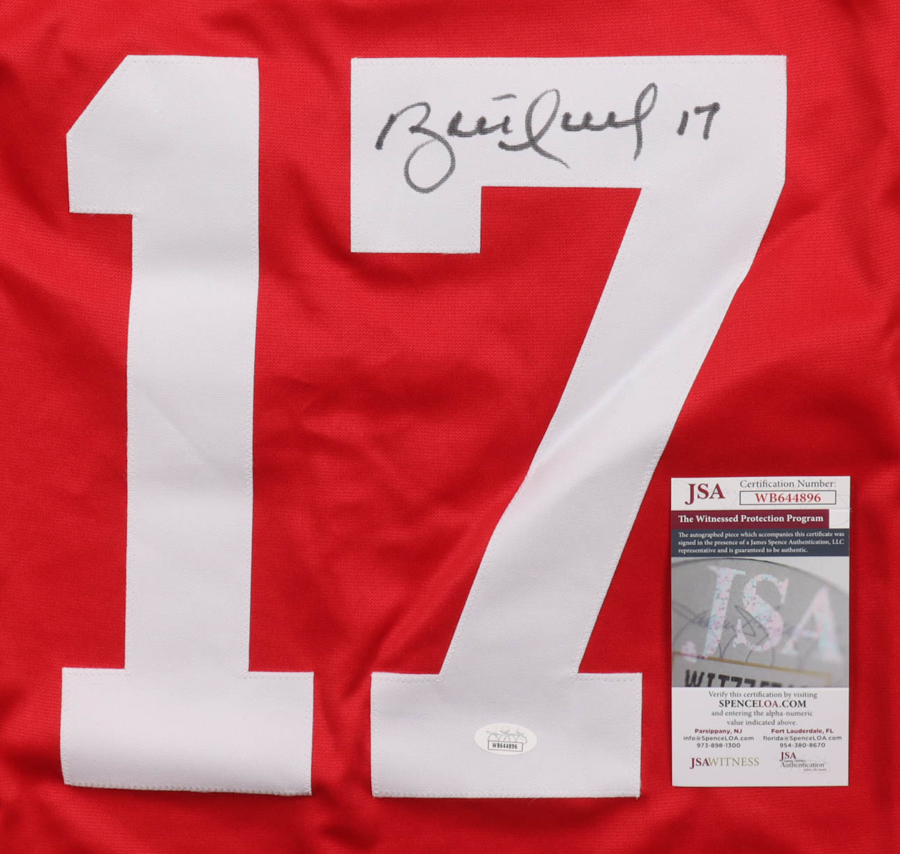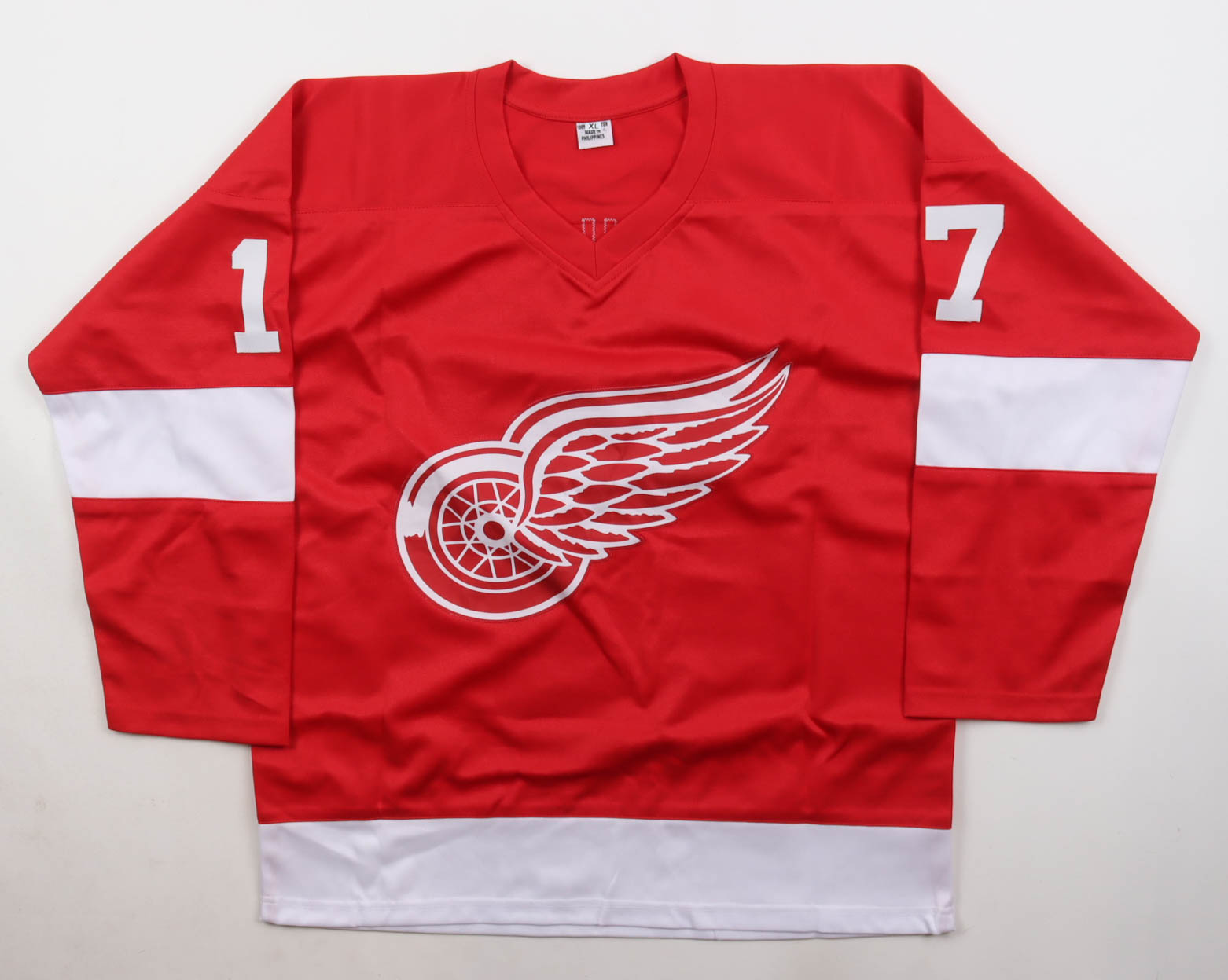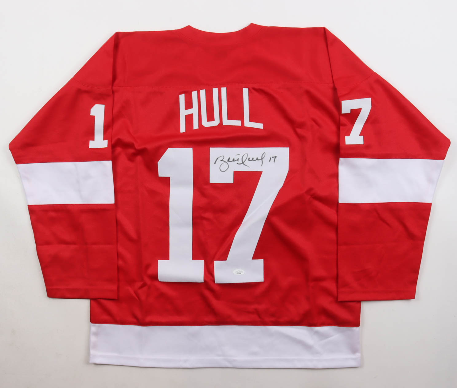Custom jersey with everything sewn on, size XL. Hand-signed by Brett Hull (Detroit Red Wings, HOF).