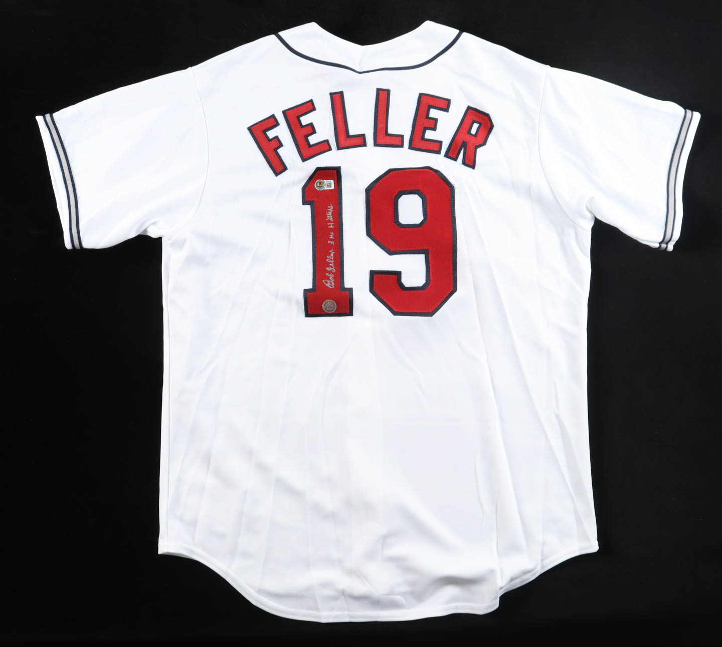 Bob Feller Signed Indians Majestic Authentic Jersey Inscribed "3 No Hitters" (Beckett & SI)