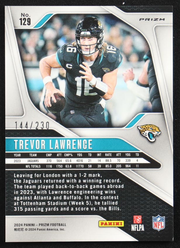 Trevor Lawrence 2024 Panini Prizm Prizms Blue Wave #129 #144/230