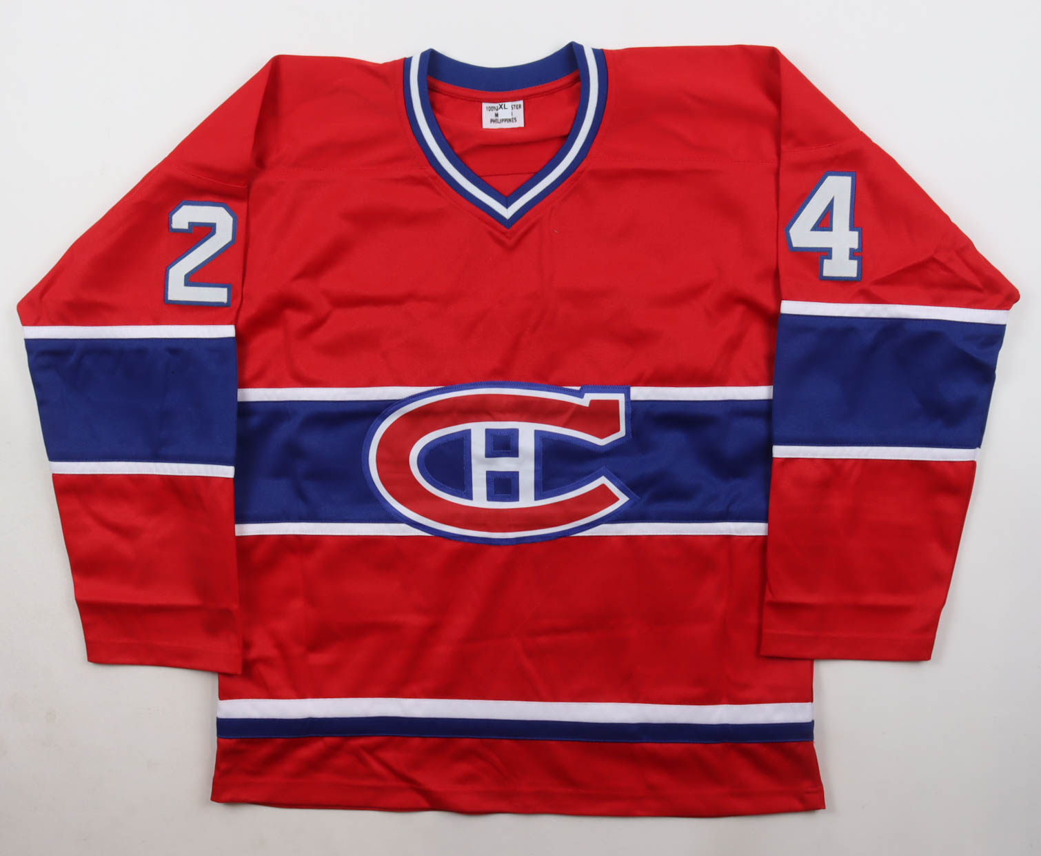 Custom jersey with everything sewn on, size XL. Hand-signed by Chris Chelios (Montreal Canadiens, HOF).