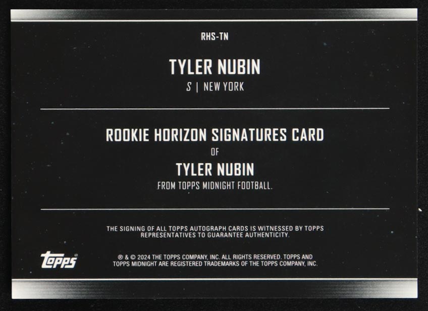 Tyler Nubin 2024 Topps Midnight Rookie Horizon Signatures Summer Solstice #RHSTN #12/50 RC