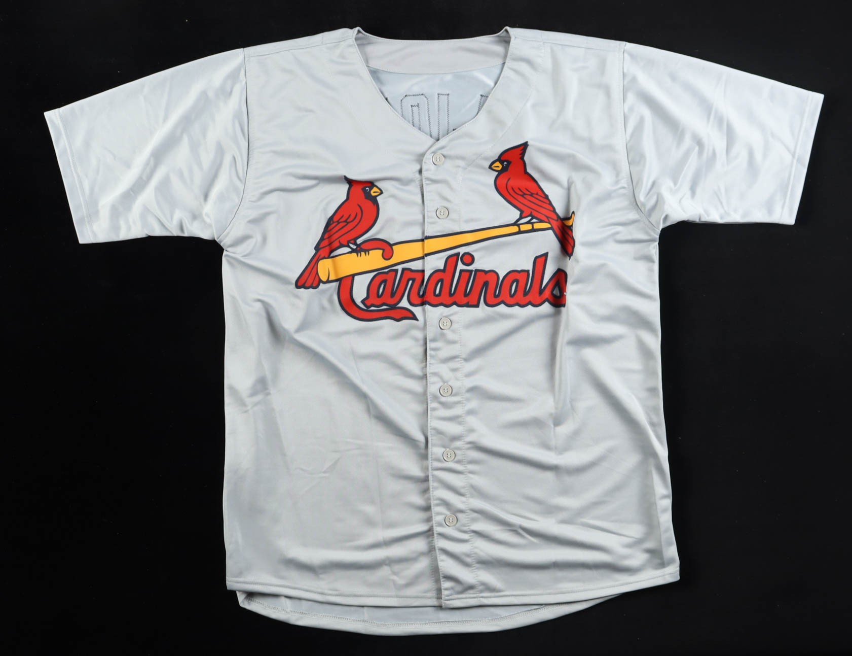 Custom jersey with everything is sewn on. Hand-signed by Albert Pujols.