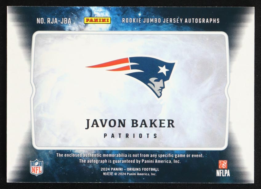 Javon Baker 2024 Panini Origins Rookie Jumbo Jersey Autographs #26 RC