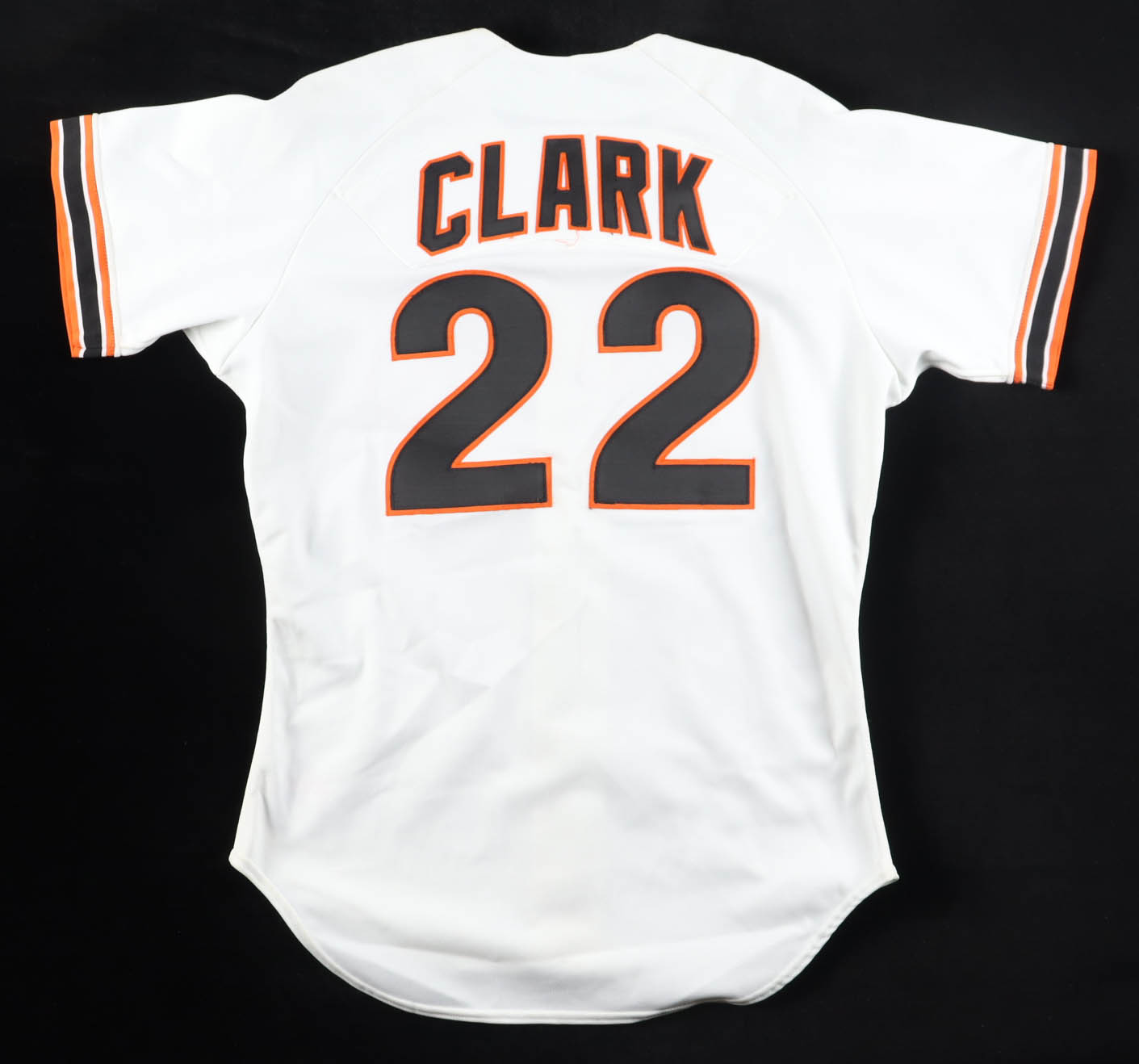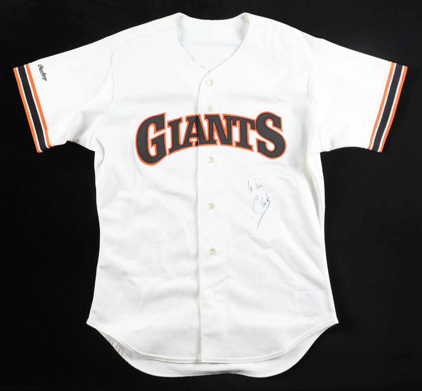 Rawlings jersey with everything sewn on, size 44. Hand-signed by Will Clark (San Francisco Giants).