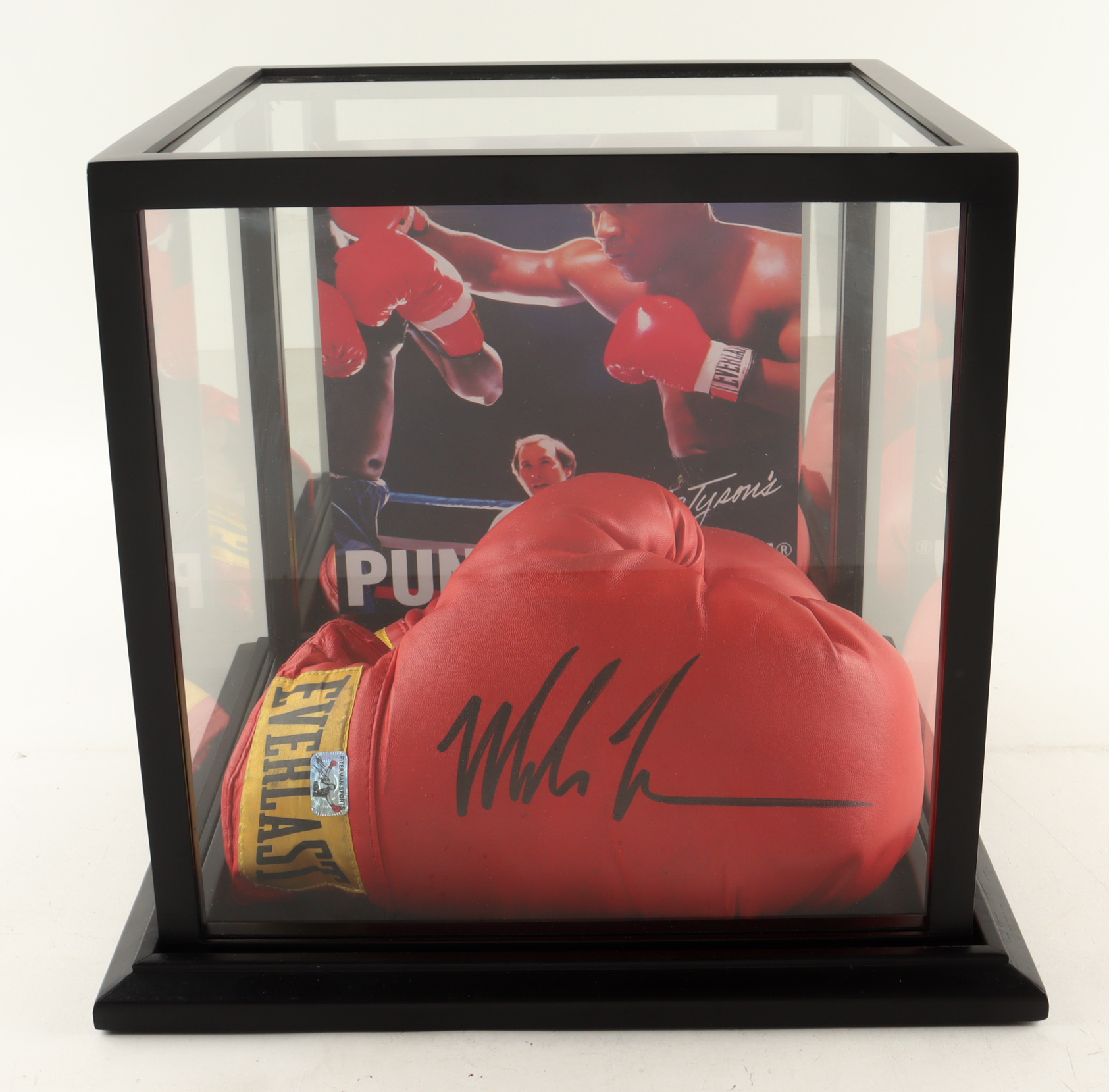 Set of (2) Everlast boxing gloves that have been hand-signed by Mike Tyson (HOF). Display case is included as shown. Refer to photos regarding the condition of the item.
