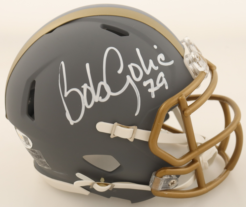 Riddell Cleveland Browns Slate Alternate Speed mini helmet has been hand-signed by Bob Golic.