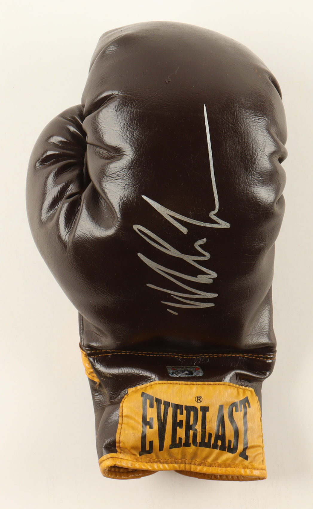 Vintage brown Everlast boxing glove that has been hand-signed by Mike Tyson (HOF). Display case is included as shown. Refer to photos regarding the condition of the item.
