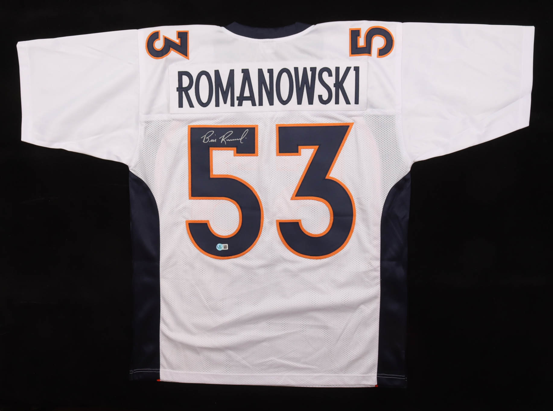 Custom jersey with everything sewn on, size XL. Hand-signed by Bill Romanowski.