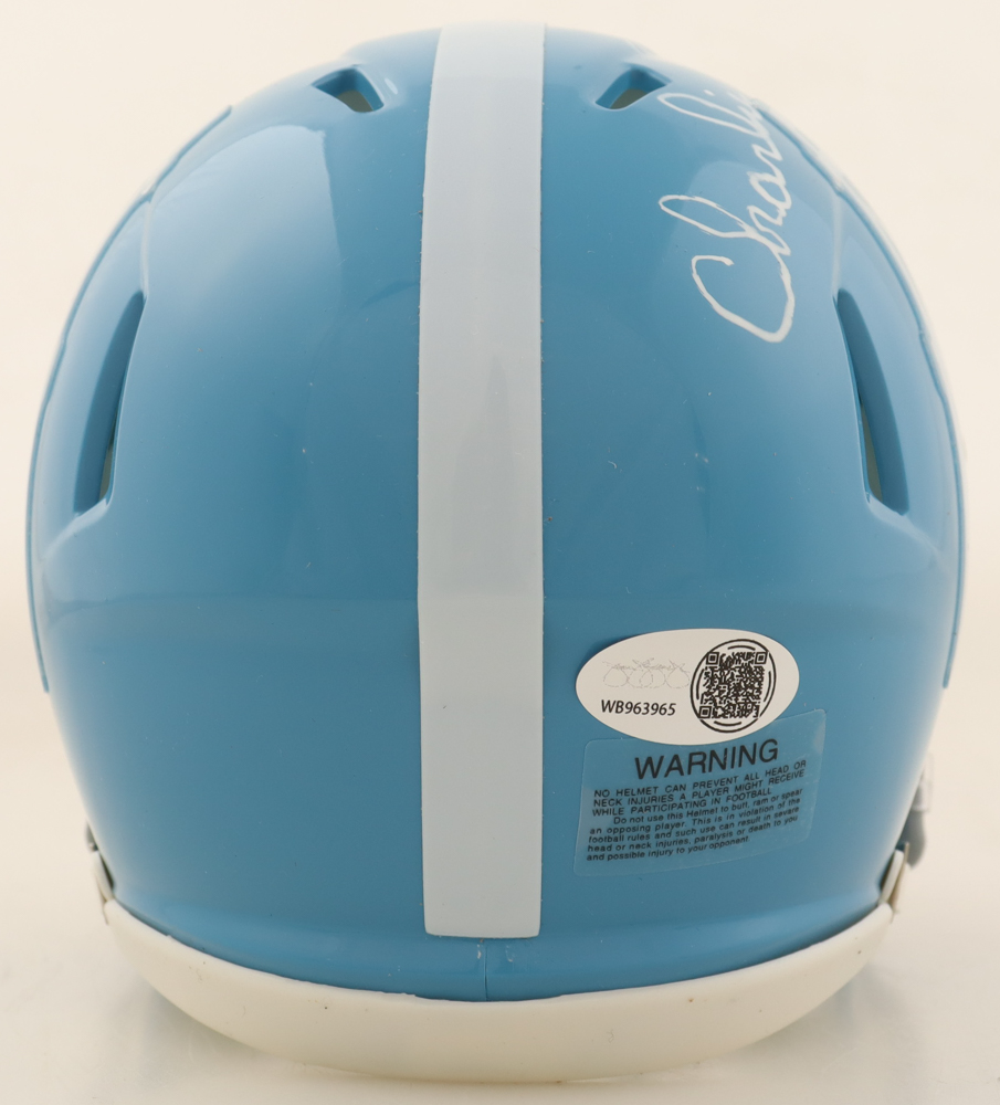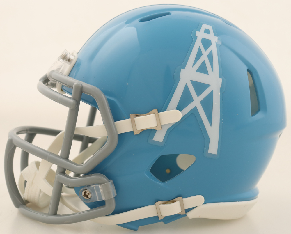 Riddell Houston Oilers Throwback Speed mini helmet. Hand-signed by Robert Brazile (HOF) and Charlie Joiner (HOF). Please note that Robert Brazile signature is smeared.