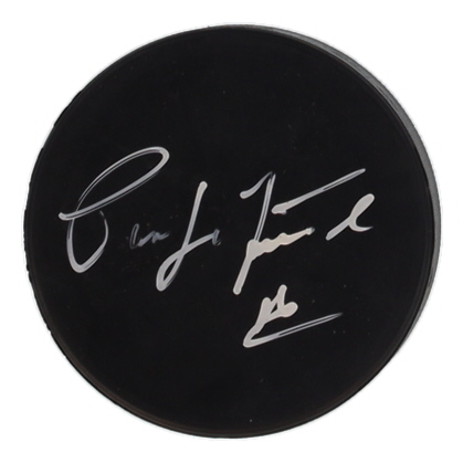 Hockey puck has been hand-signed by Pat LaFontaine (New York Rangers, HOF).