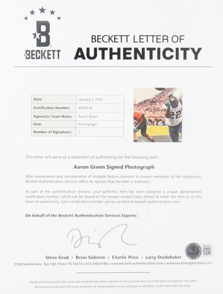 Aaron Green Signed TCU Horned Frogs Custom Framed Photo (Beckett)