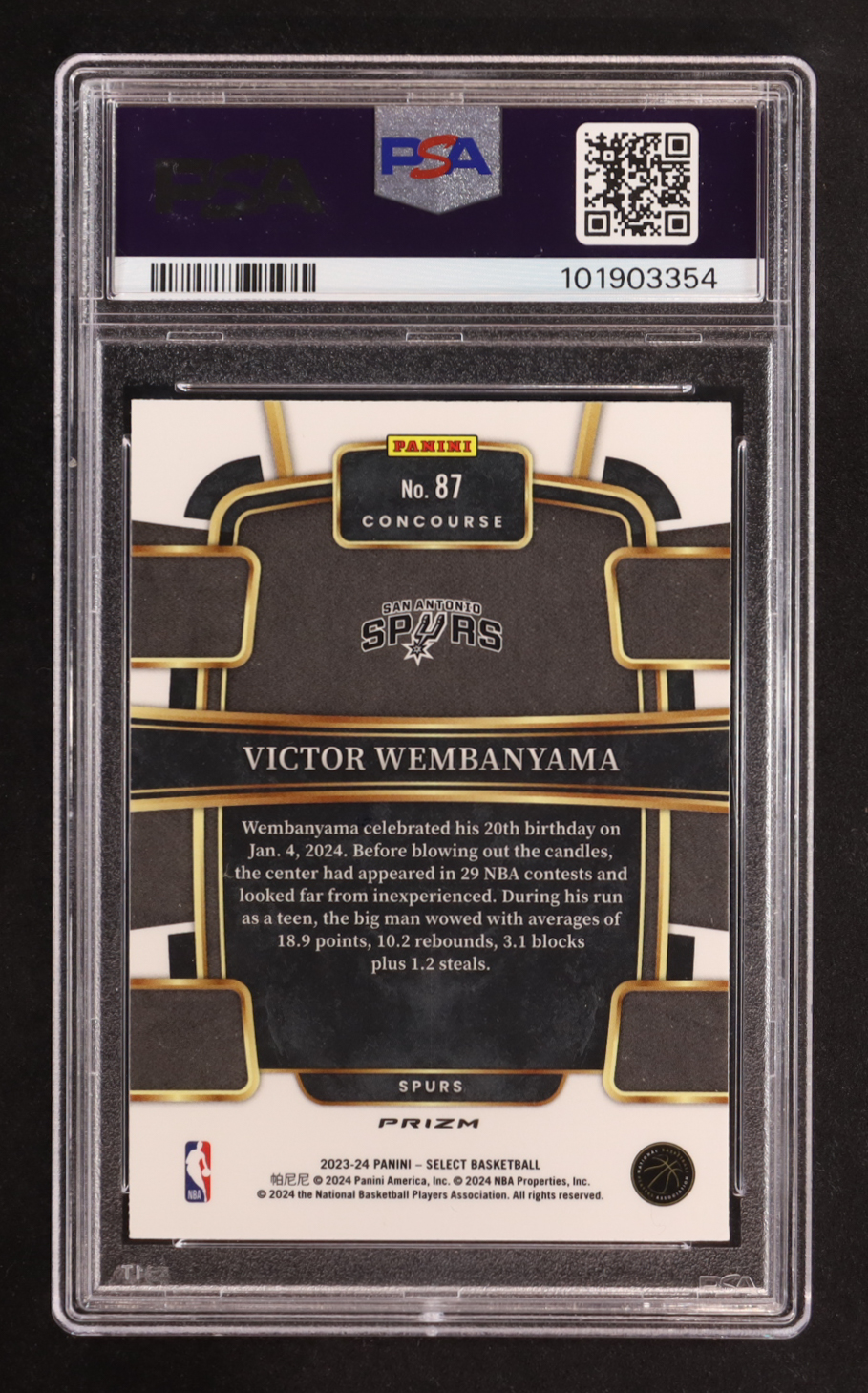 Victor Wembanyama 2023-24 Select Prizms Blue Cracked Ice #87 RC (PSA 10)