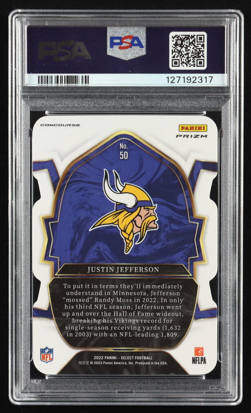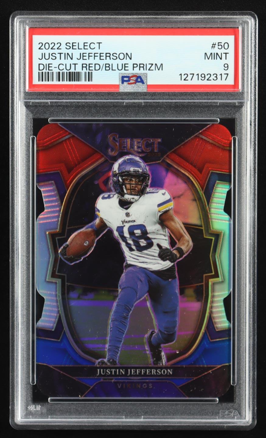 Justin Jefferson 2022 Select Prizm Red and Blue Die Cut #50 (PSA 9)