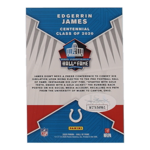 Edgerrin James Signed 2020 Panini Hall Of Fame #NNO Inscribed "HOF 20'" (JSA)