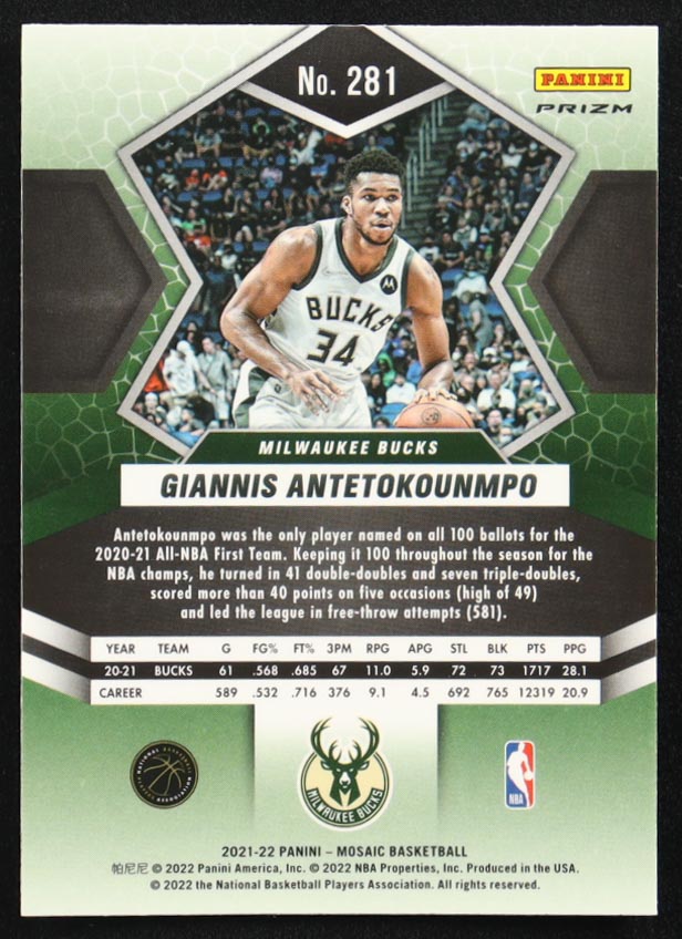 Giannis Antetokounmpo 2021-22 Panini Mosaic Mosaic Green ALL #281