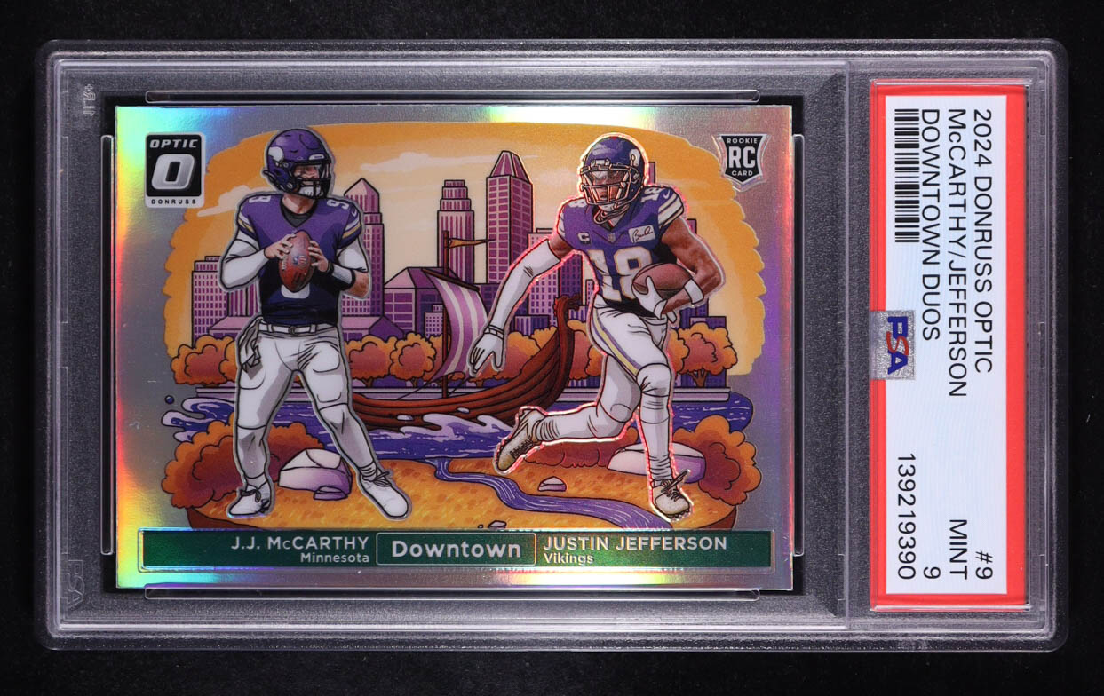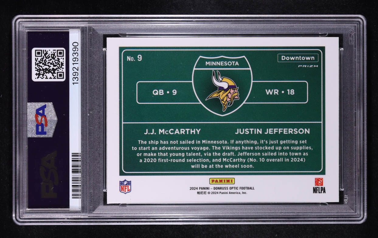 JJ McCarthy /Justin Jefferson 2024 Donruss Optic Downtown Duos #9 RC (PSA 9)