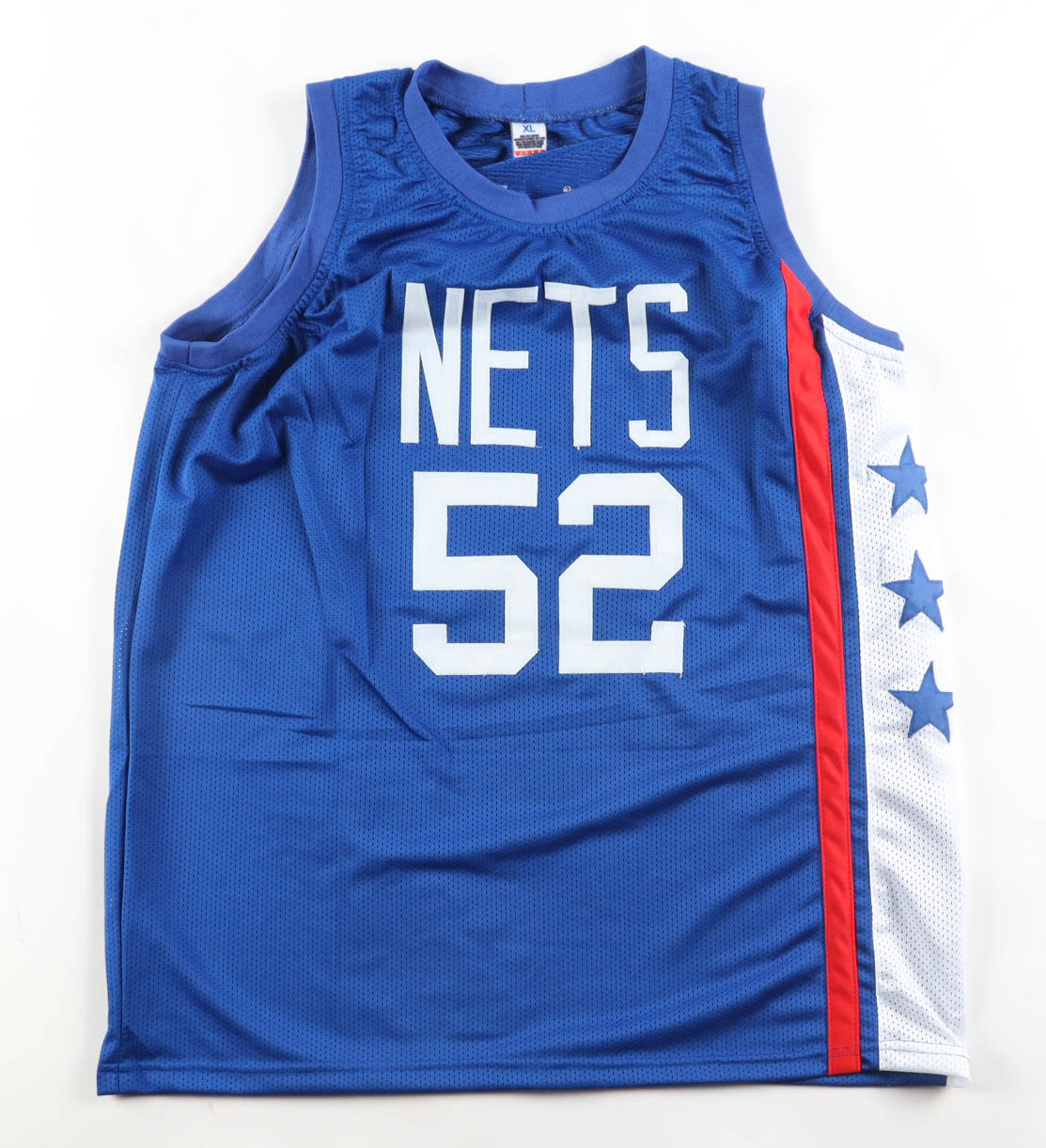 Custom jersey, everything is sewn on, size XL. Hand-signed by Buck Williams. Please note, glue is visible through the reverse number.