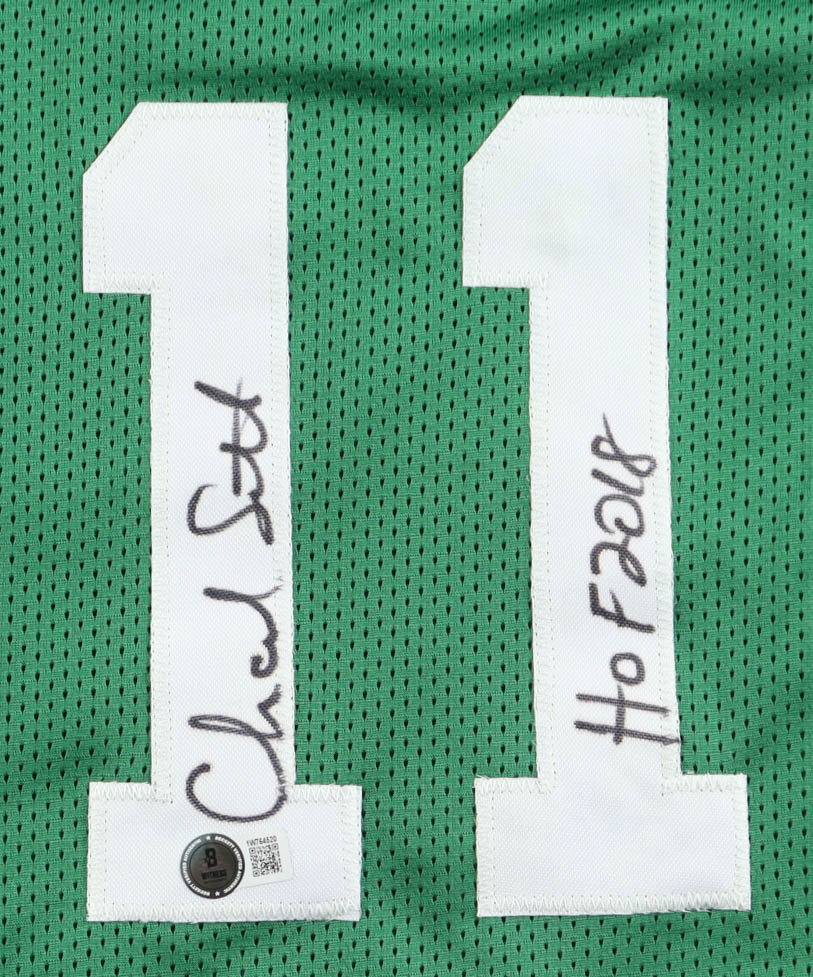 Custom jersey. Everything is sewn on, size XL. Hand-signed and inscribed by Charlie Scott (HOF).