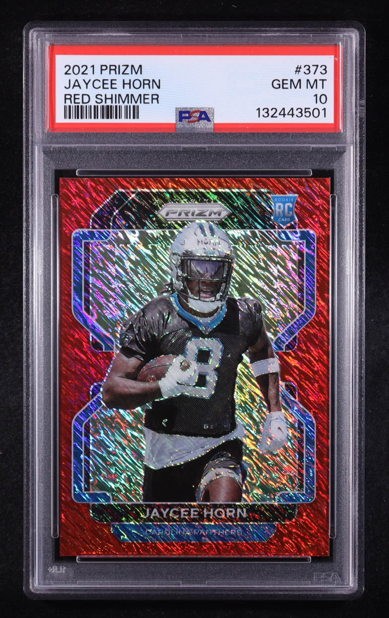 Jaycee Horn 2021 Panini Prizm Prizms Red Shimmer #373 #22/35 RC (PSA 10)