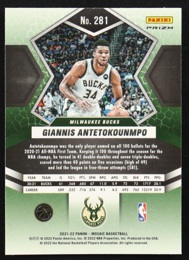 Giannis Antetokounmpo 2021-22 Panini Mosaic Mosaic Green ALL #281