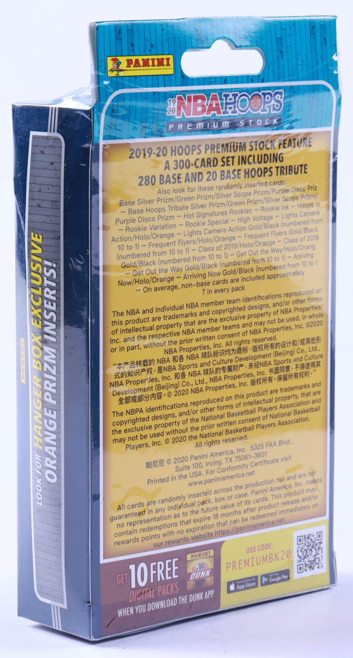 2019-20 NBA Hoops Premium Stock Basketball Hanger Box with (20) Cards