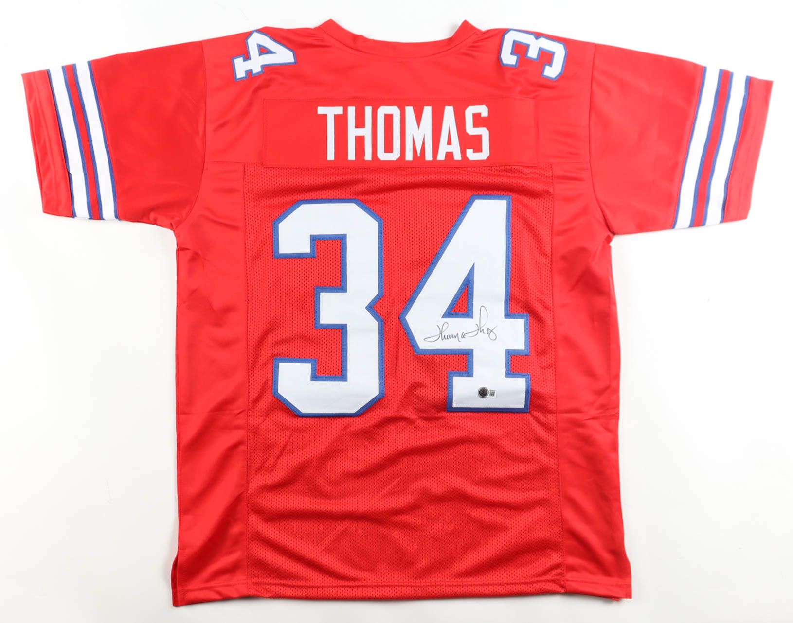 Custom jersey with everything sewn on, size XL. Hand-signed by Thurman Thomas (Buffalo Bills, HOF).