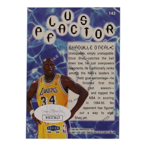 Shaquille O'Neal Signed 1998-99 Fleer Tradition Plus Factor #143 (JSA)