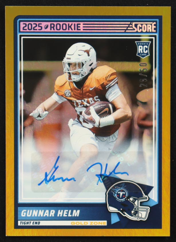 Gunnar Helm 2025 Score Rookie Signatures Gold Zone #99 #29/50 RC