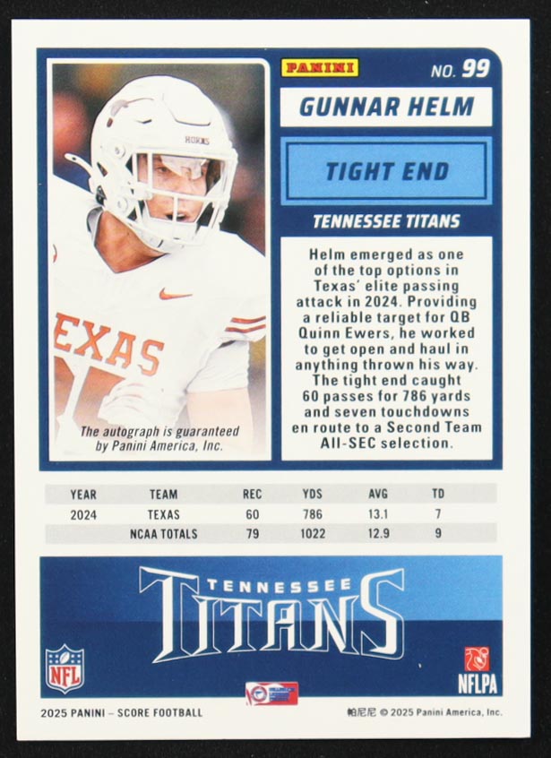 Please see photos for details regarding the condition of the card (Tennessee Titans).
