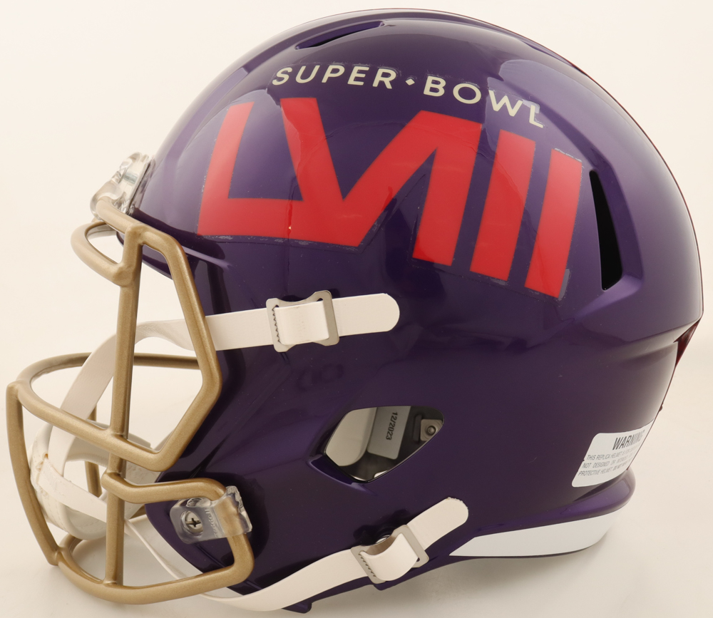 Riddell Super Bowl LVIII logo full-size speed replica helmet has been hand-signed by Dre Greenlaw
