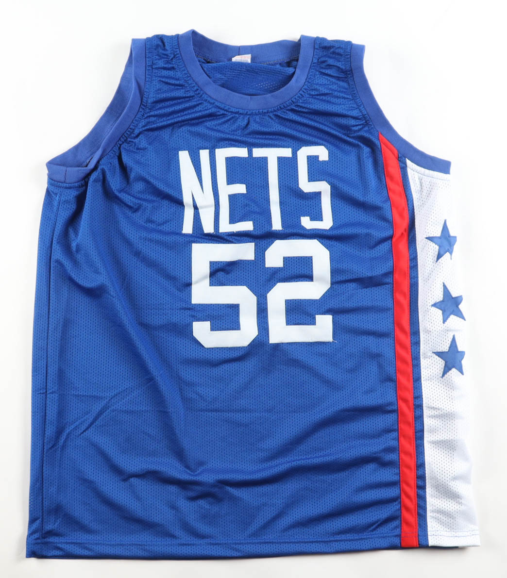 Custom jersey, everything is sewn on, size XL. Hand-signed by Buck Williams. Please note, glue is visible through the reverse number.