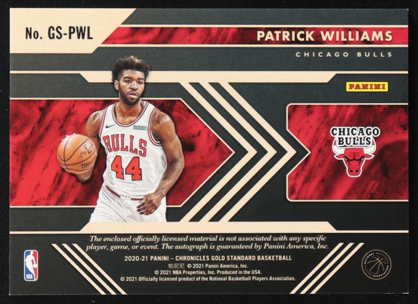 Patrick Williams 2020-21 Panini Chronicles Gold Standard Rookie Jersey Autographs #14 #24/99 RC