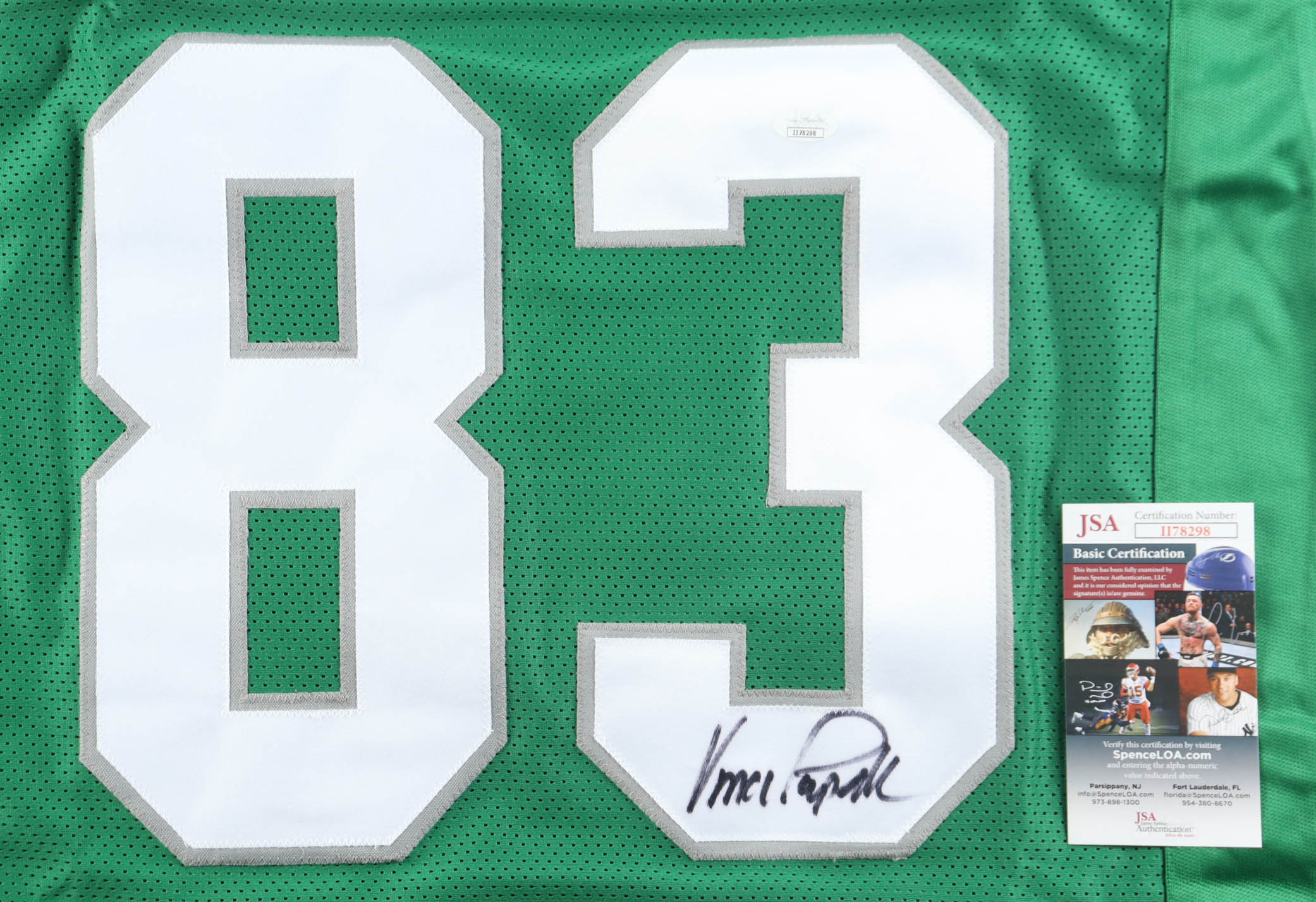Custom jersey with everything sewn on, size XL. Hand-signed by Vince Papale (Philadelphia Eagles).