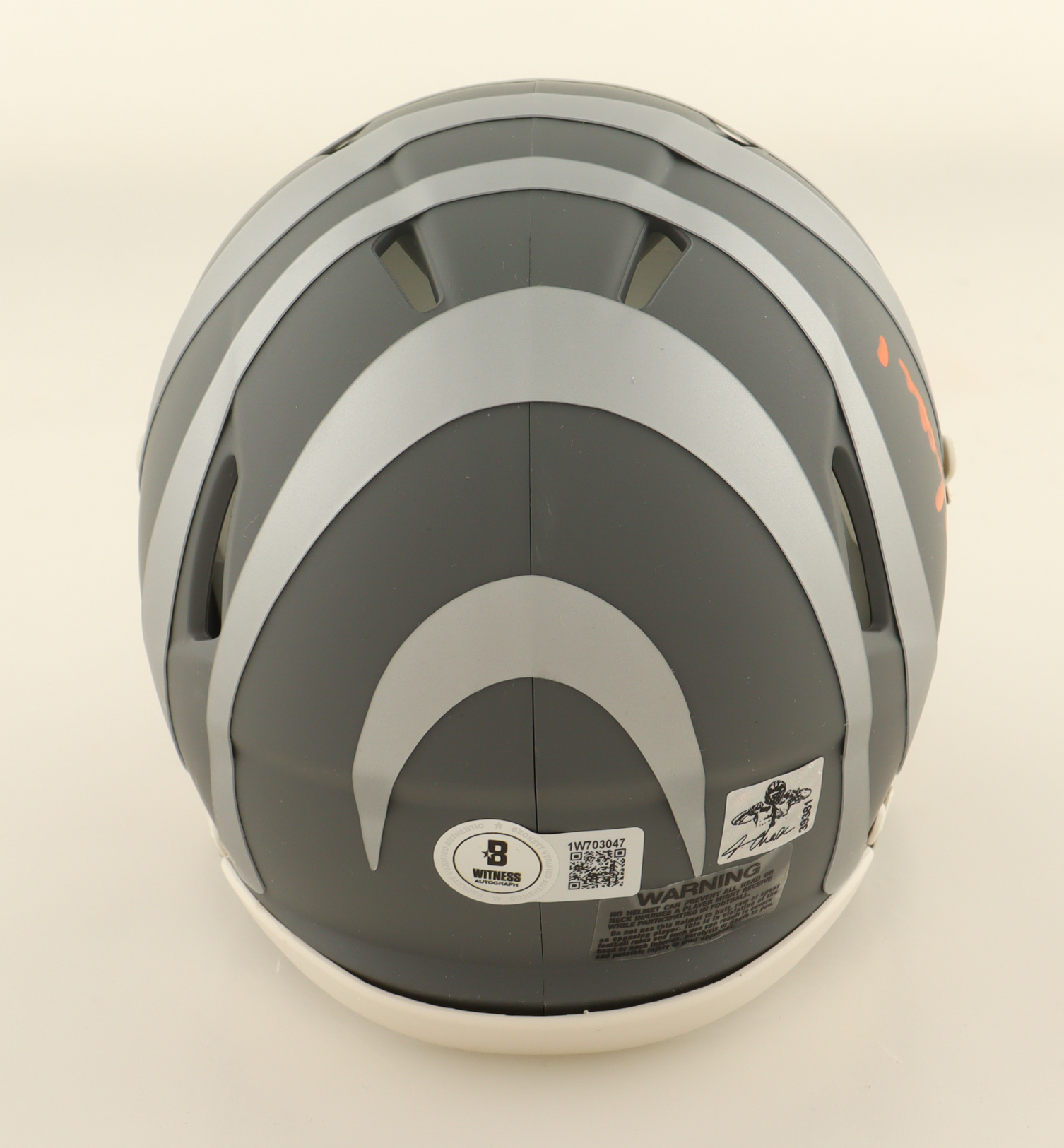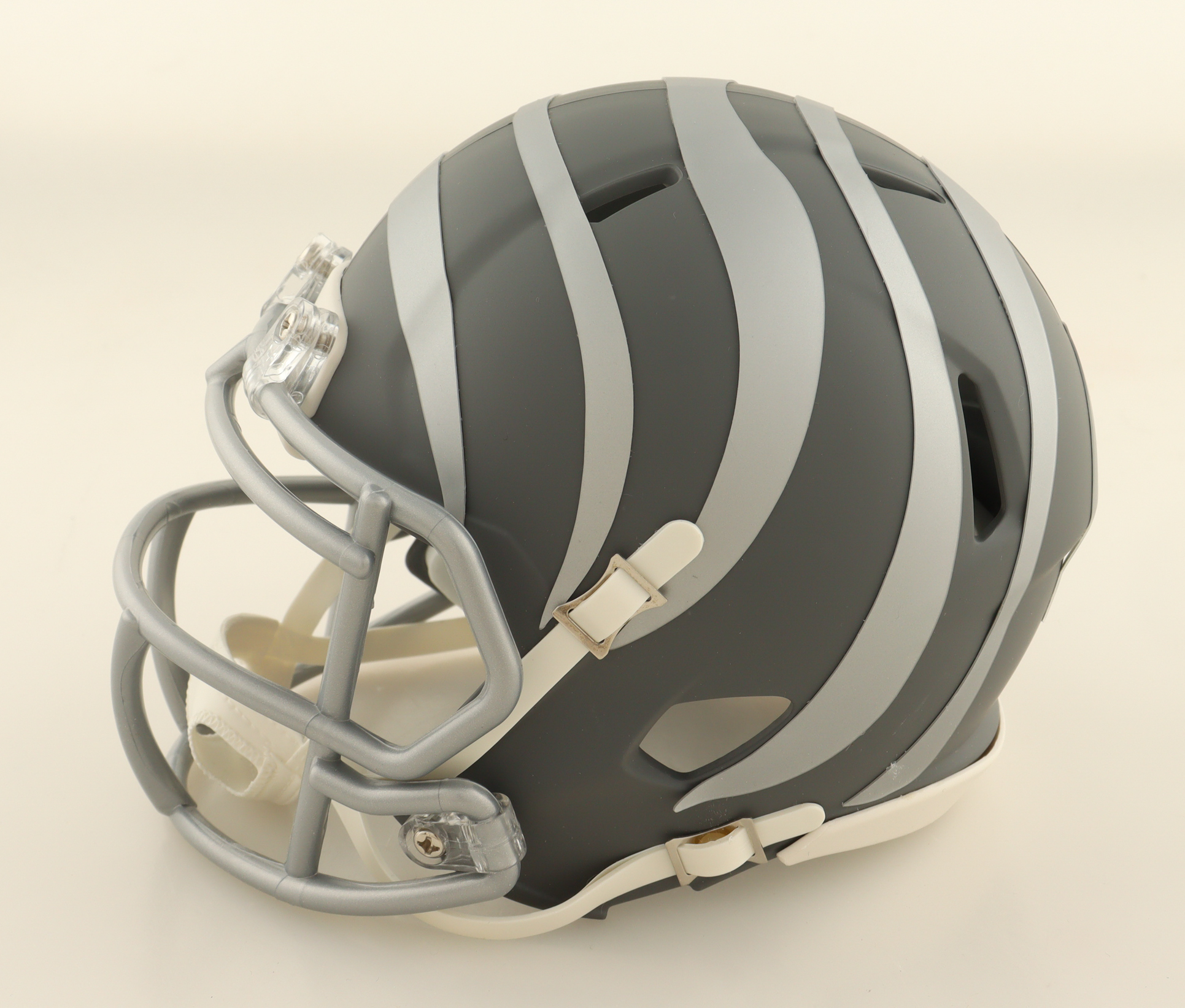 Riddell Cincinnati Bengals Slate Alternate Speed Mini Helmet. Hand-signed by Ja'Marr Chase. Please note, the autograph is smudged and there is scuffing on the helmet.