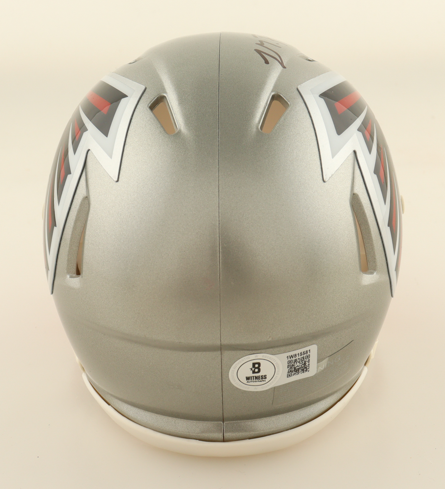 Riddell Atlanta Falcons flash alternate speed mini helmet has been hand-signed by Michael Penix Jr. Please note, the signature is scuffed and faded.