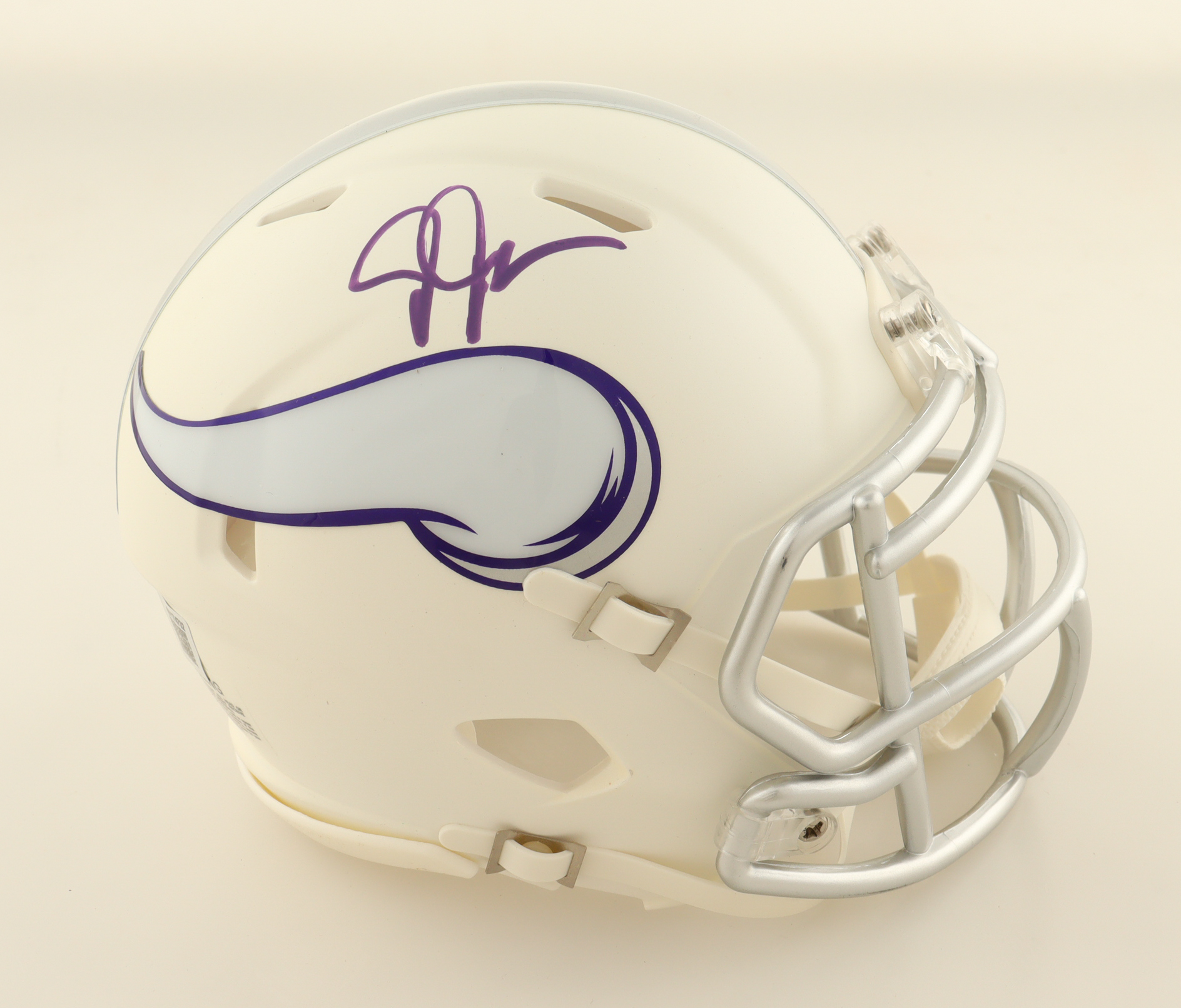 Riddell Minnesota Vikings Speed Mini Helmet. Hand-signed by Justin Jefferson.