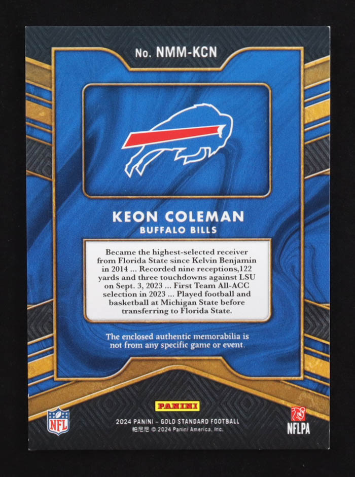 Keon Coleman 2024 Panini Gold Standard Newly Minted Memorabilia White Gold #9 #75/75 RC