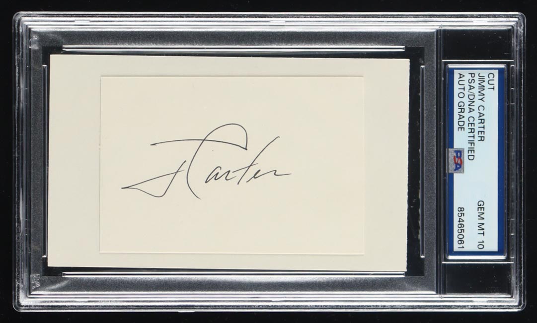 Index card has been hand-signed by Jimmy Carter (D. 2024) and has been graded (PSA) 10. Please see photos for details regarding the item.