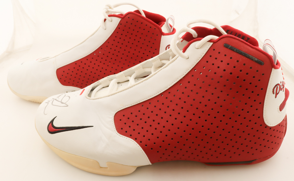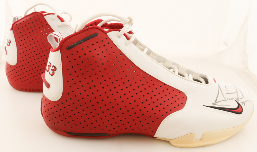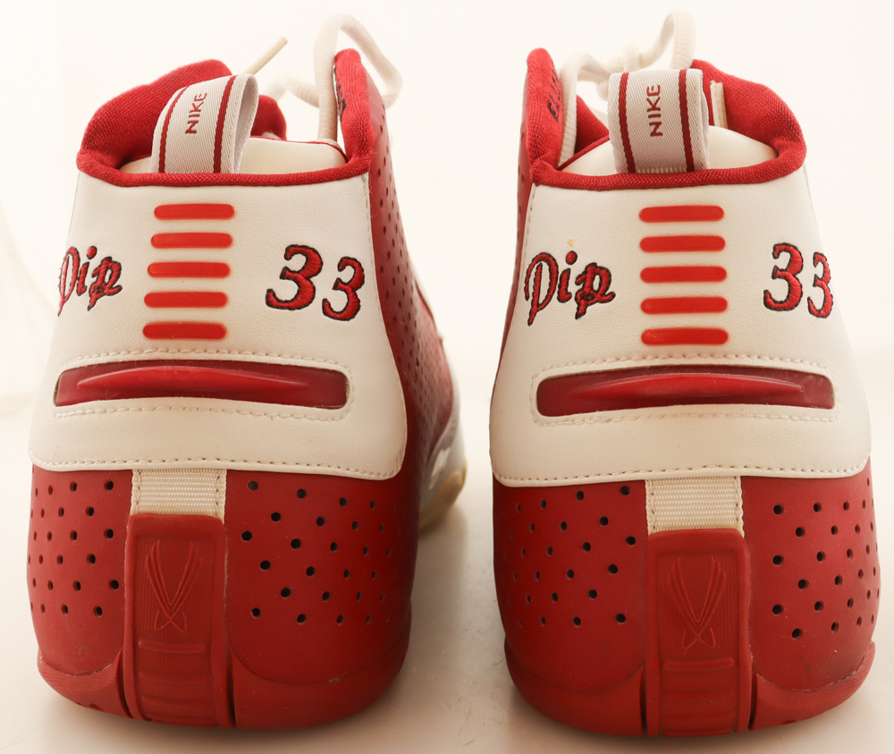 Pair of Scottie Pippen PE colorway Nike Air Max basketball shoes, size 16. Both shoes have been individually hand-signed by Scottie Pippen (Chicago Bulls, HOF).
