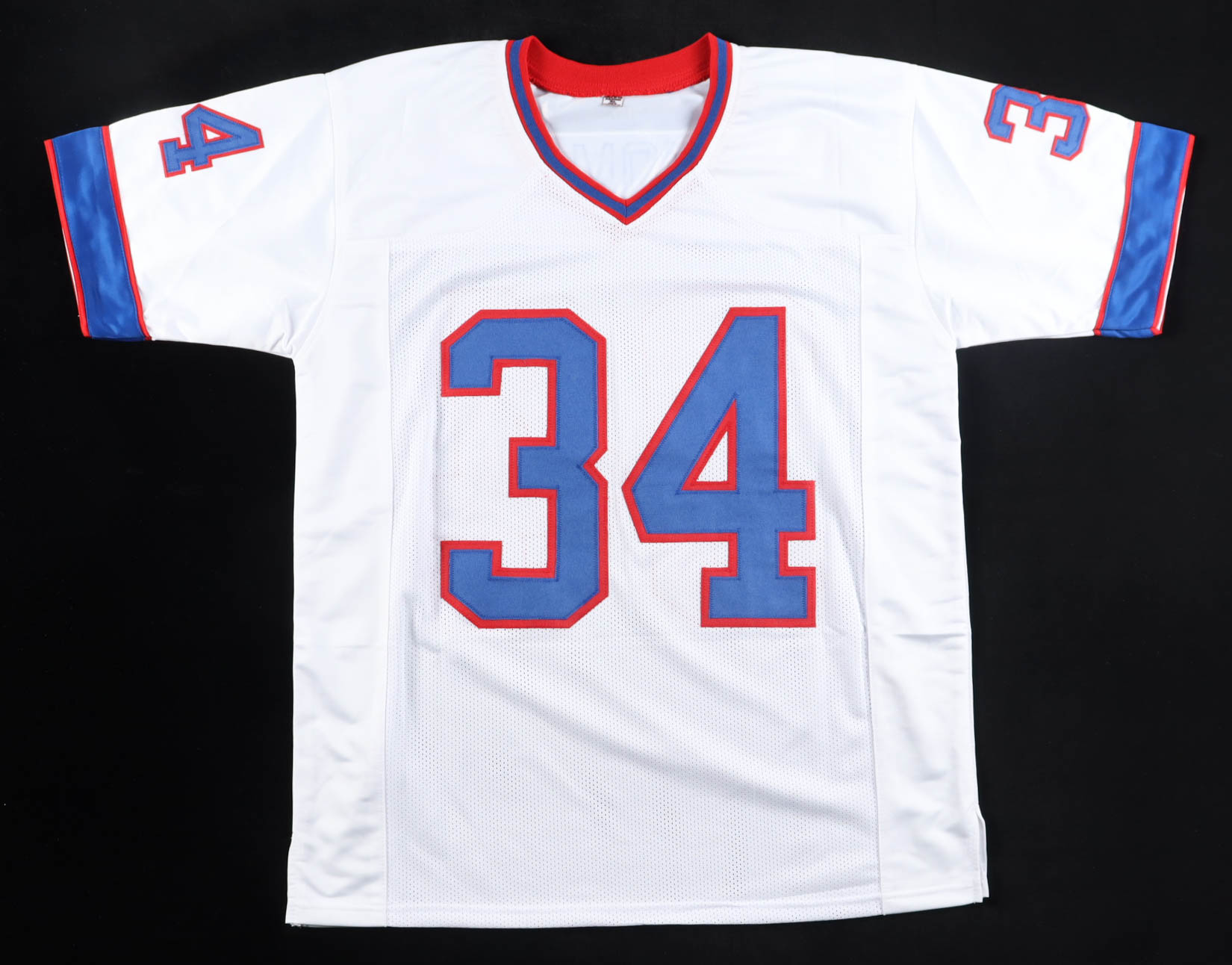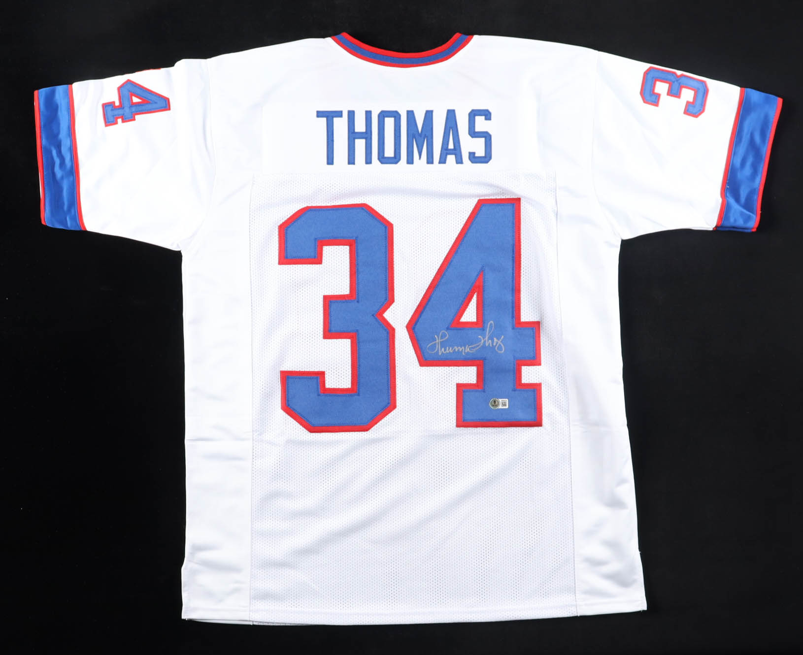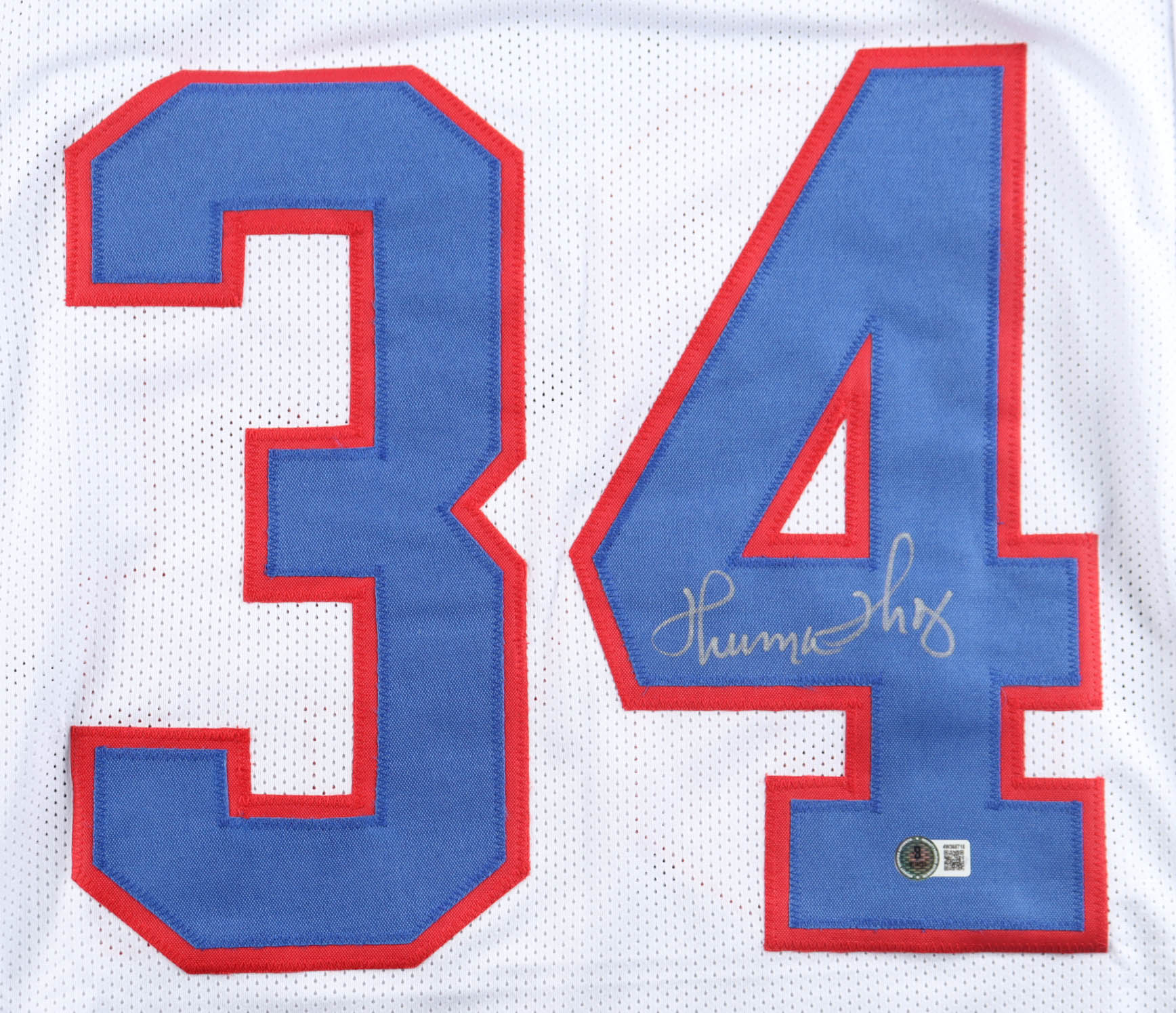 Custom jersey with everything sewn on, size XL. Hand-signed by Thurman Thomas (Buffalo Bills, HOF).