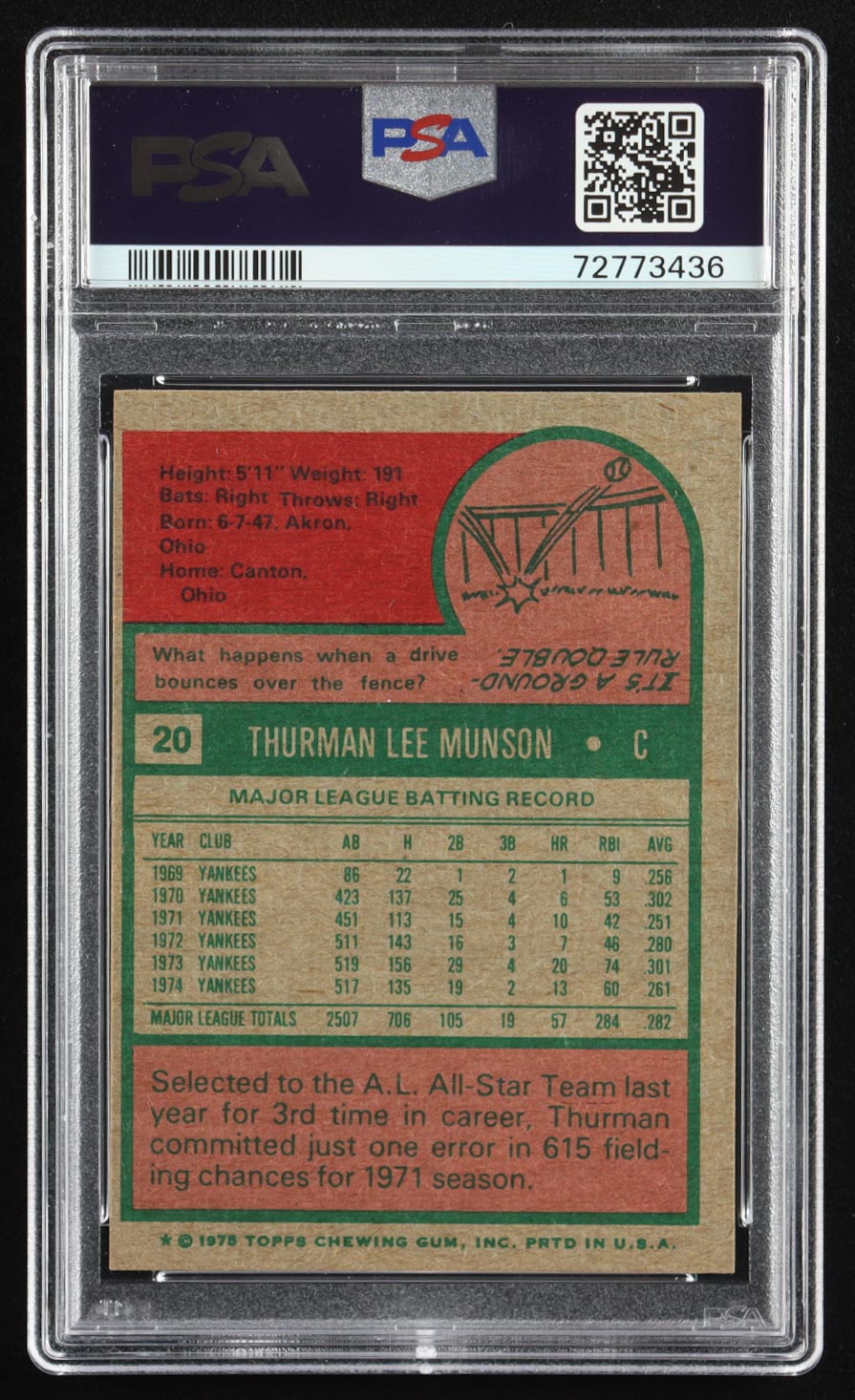 Thurman Munson 1975 Topps #20 (PSA 7)